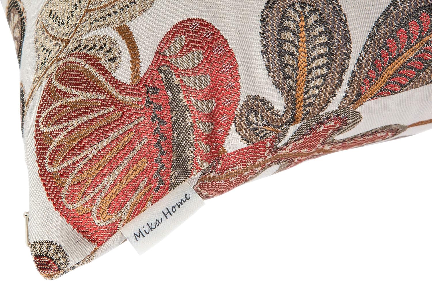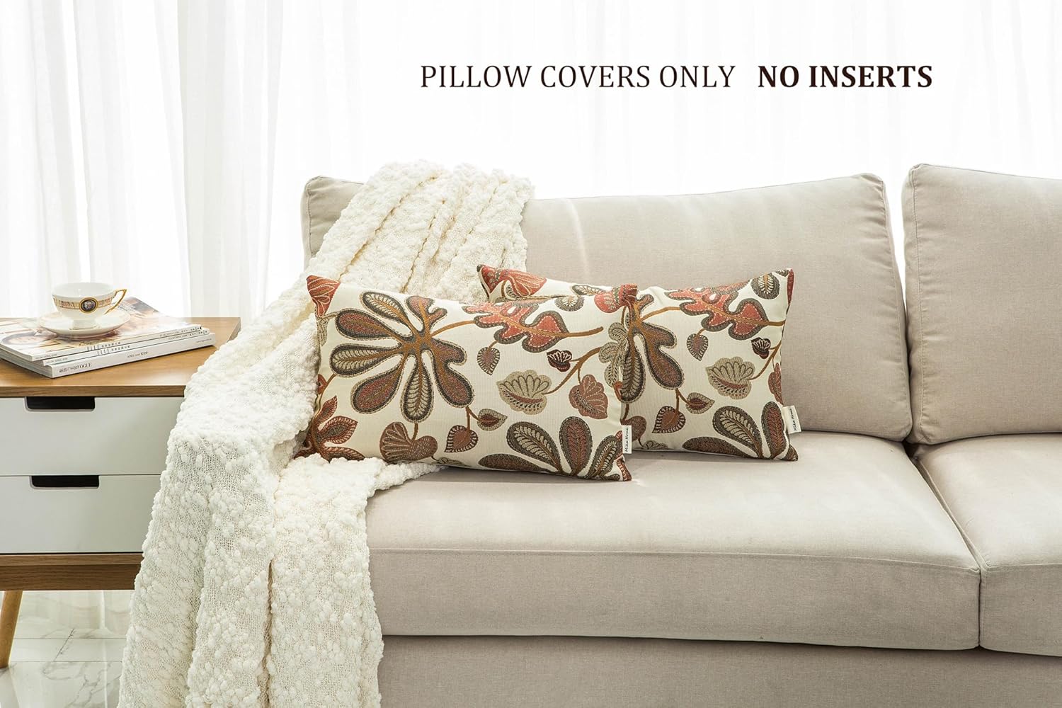 Set of 2 Jacquard Tropical Leaf Pattern Oblong Throw Pillow Covers Accent Pillowcase 12X20 Inches,Coral Cream
