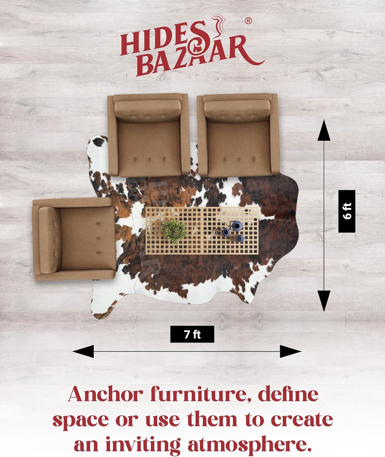 - Size : 6' x 7' (Cowhide)