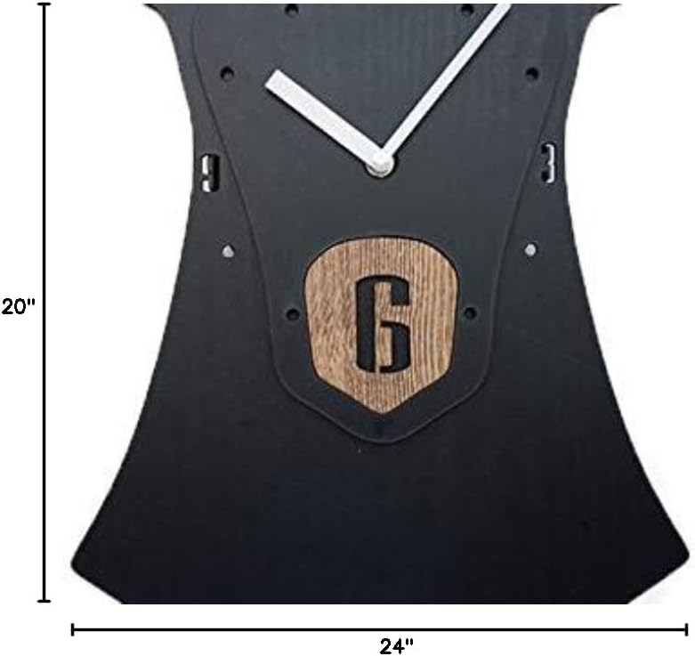 - This large clock is in the shape of a reindeer and measures 20βX 24β and features a black Pinewood MDF ecoboard dial that is 0.15β thick. The clock hands are made of silver aluminum. Operates with 1 AA battery which is not included.