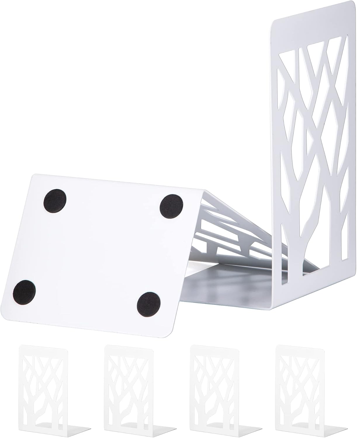 Book Ends, Bookends, Bookends for Shelves, Bookend, Book Ends for Heavy Books, White Metal Book Shelf Holder Home Decorative, Book Stoppers for Shelves, Bookend Supports 3 Pair