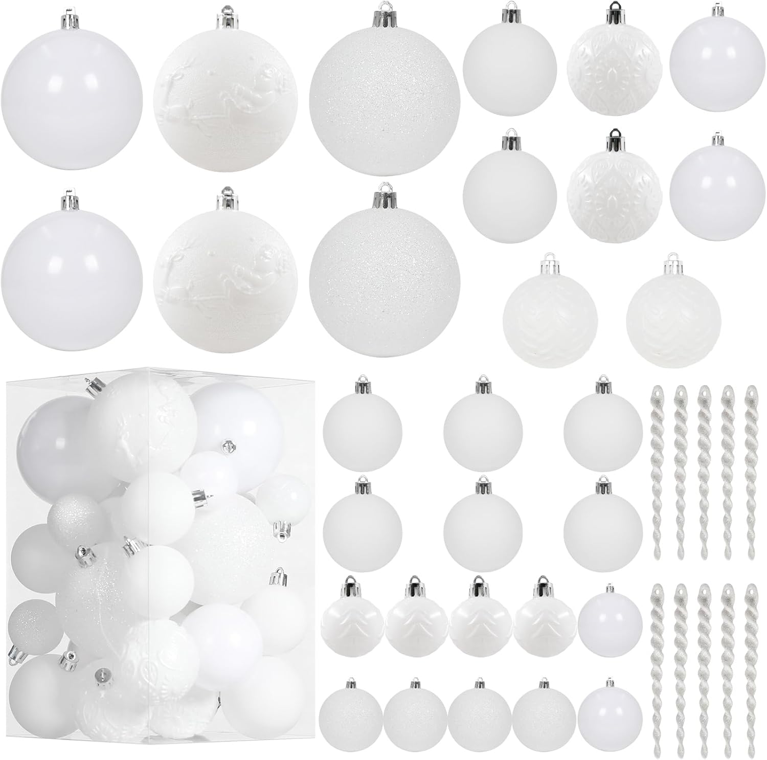 Christmas Ball Ornaments for Christmas Decorations - 41 Pieces Xmas Tree White Shatterproof Ball Ornaments with Hanging Loop for Holiday and Party Decoration