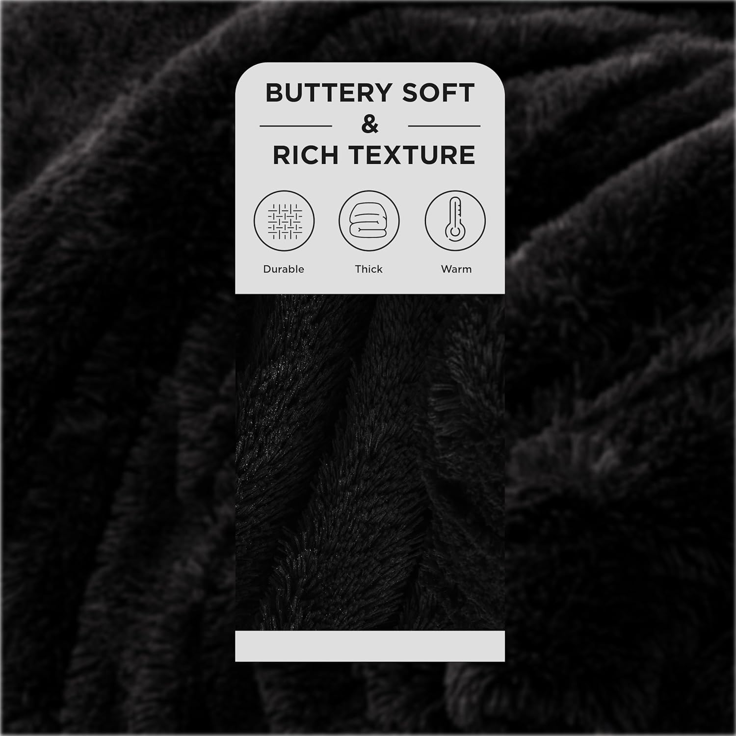 Bedsure GentleSoft Fluffy Black Throw Blanket Gifts for Men, Black Decor Soft Cozy Fuzzy Plush Minky Thick Warm Sherpa Fleece Faux Fur Throws for Couch Bed, Furry Blanket Gifts for Mom Dad, 50x60