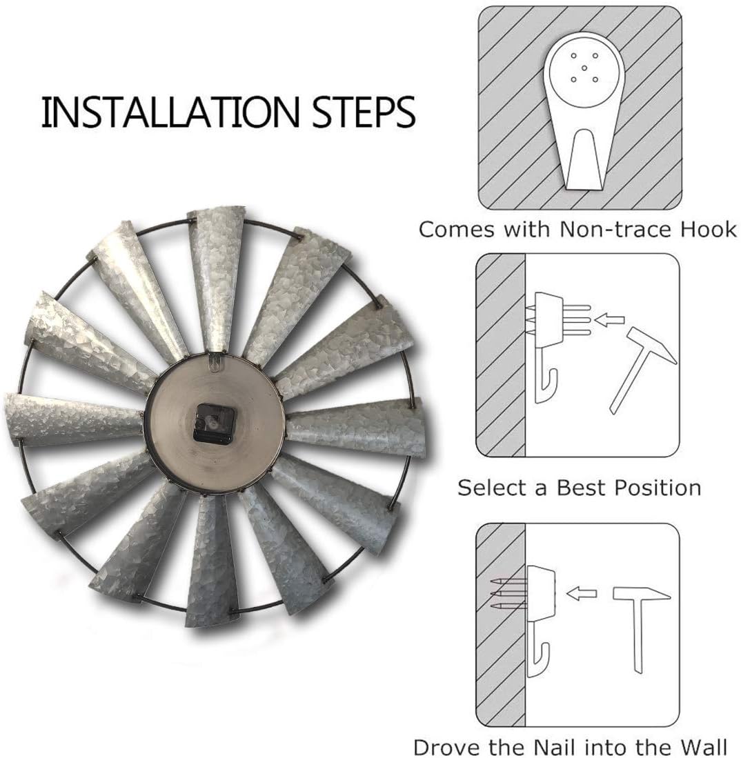 - COUNTRY WINDMILL STYLE -Inspired by rustic windmills on a farm, this gorgeous,analog clock features a distressed finish, blending seamlessly with any home decors.