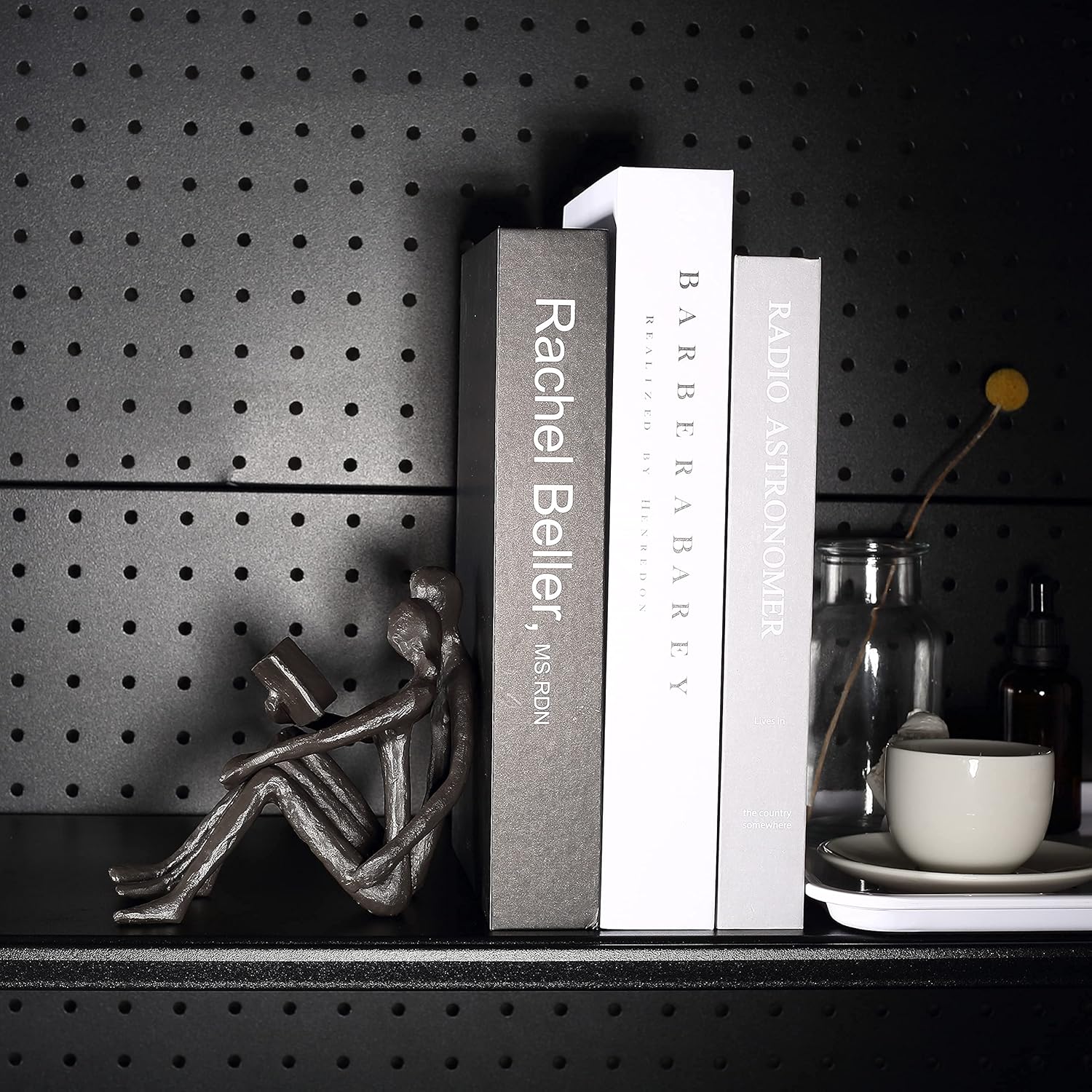 - HEAVY DUTY METAL - Each bookend is sturdy and made of cast iron. They’ll prevent your books from sliding. The lovely couple also makes for heartwarming shelf decor.