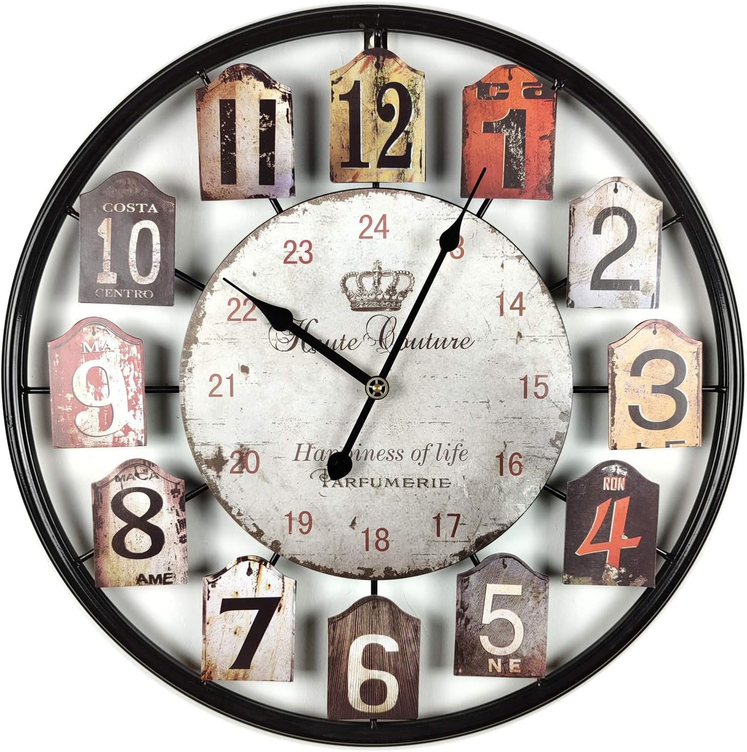Large Wall Clock Separate Retro Dial Decorative Silent Non Ticking 20 Inch Big Vintage Farmhouse Clocks for Living Room,Black Metal Frame