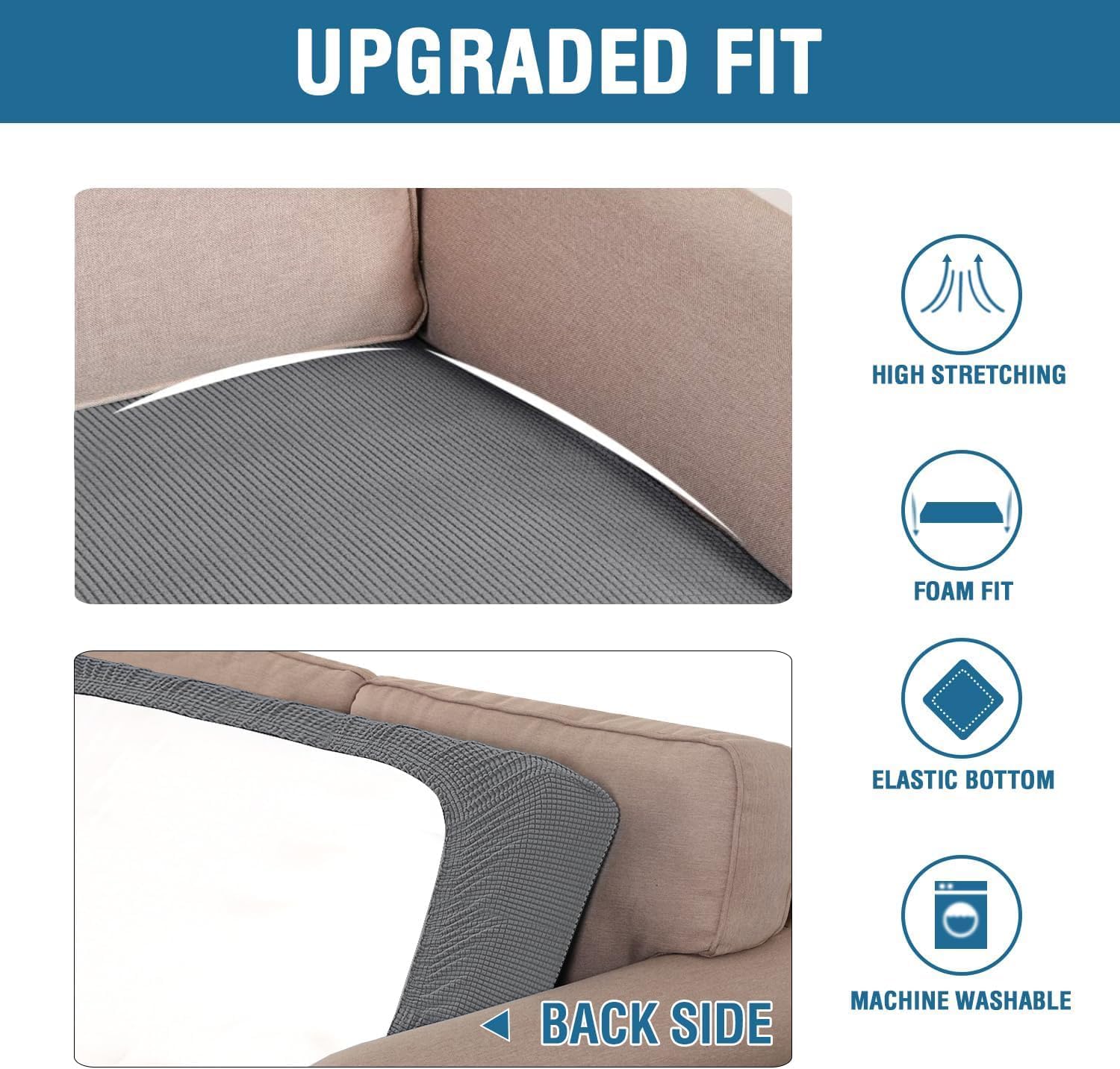H.VERSAILTEX Super Stretch Individual Seat Sofa Covers Couch Cushion Covers Slipcover Sets Thick Jacquard Textured Twill Fabric (2 Piece Large, Grey)