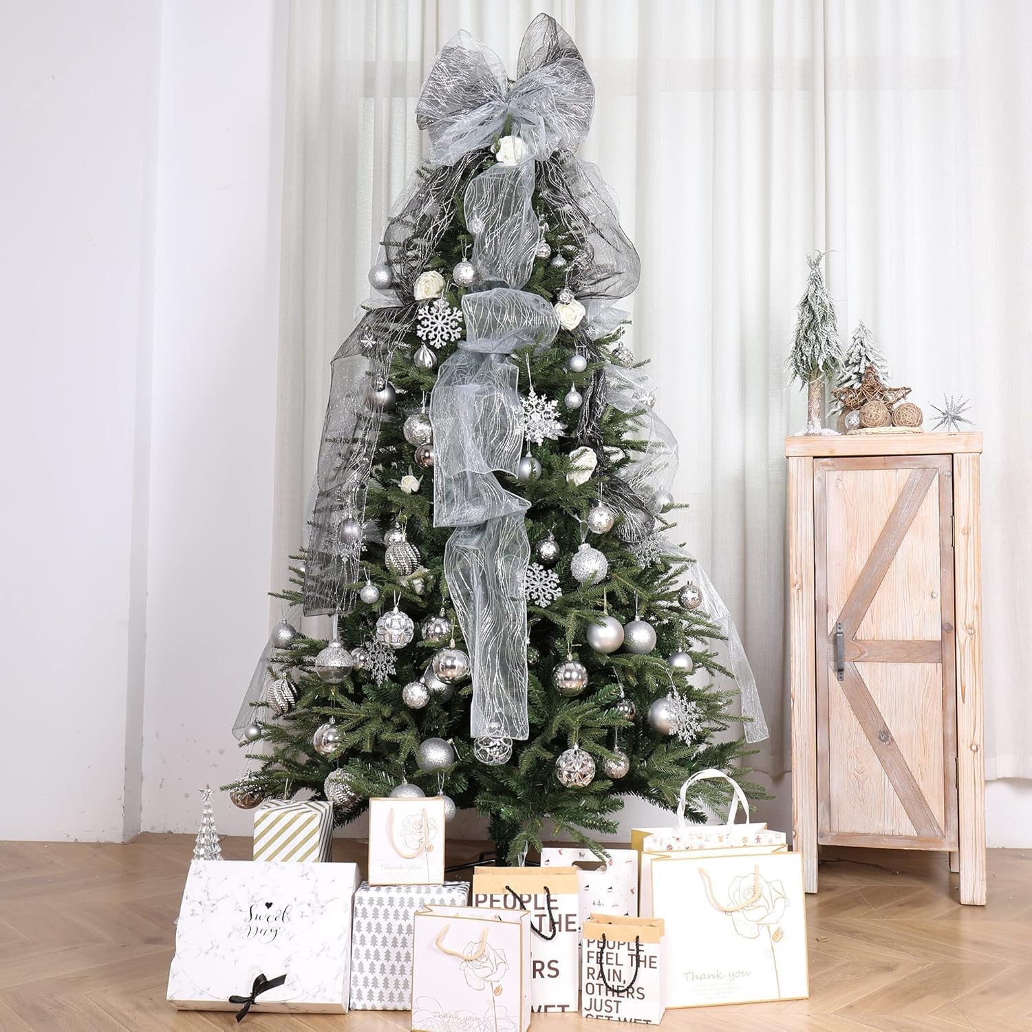 87ct Christmas Ball Ornaments Set Shatterproof Seasonal Hanging Decorations with Reusable Hand-held Gift Package for Xmas Tree Holiday Party and Home Decor, Silver