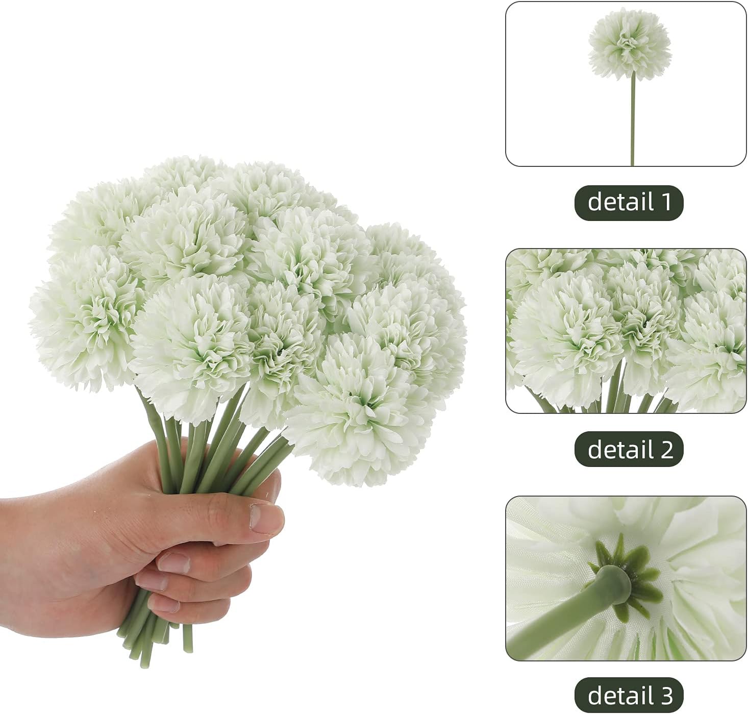 - Quantity and Size: Package includes 20 artificial chrysanthemum ball flowers. (Vase not include).Height:23 cm/9 inch,Diameter of the flower:7cm/2.75inchThey are micro sized The size of the flower head is similar to that of a golf ball Suitable for small vases