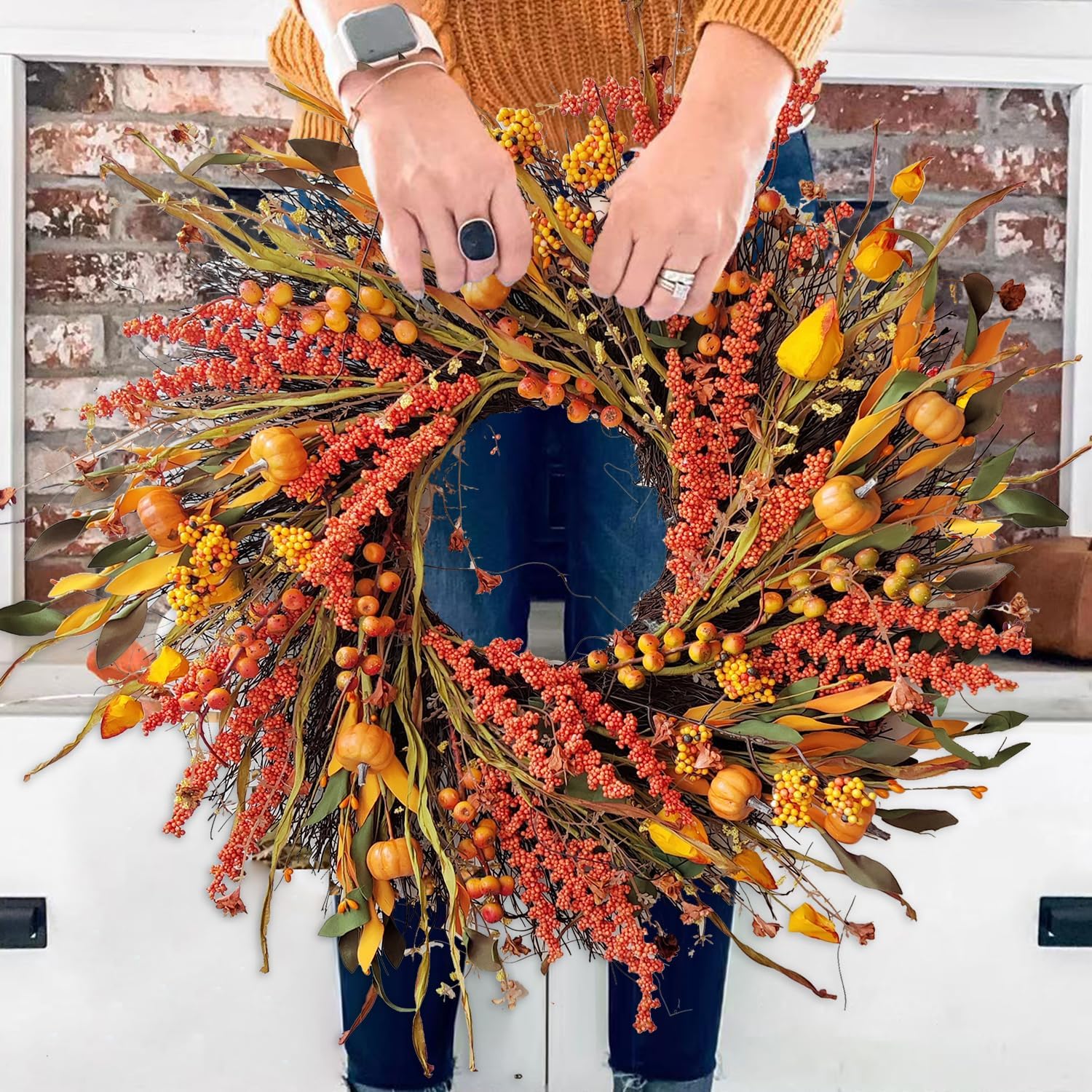 - ④ 【Easy to Decorate】-This fall wreaths with the traditional tone. Suitable to use for front door, window, fireplace, wall, office,wedding, retail stores decoration, parties, indoor activities and all kinds of festive