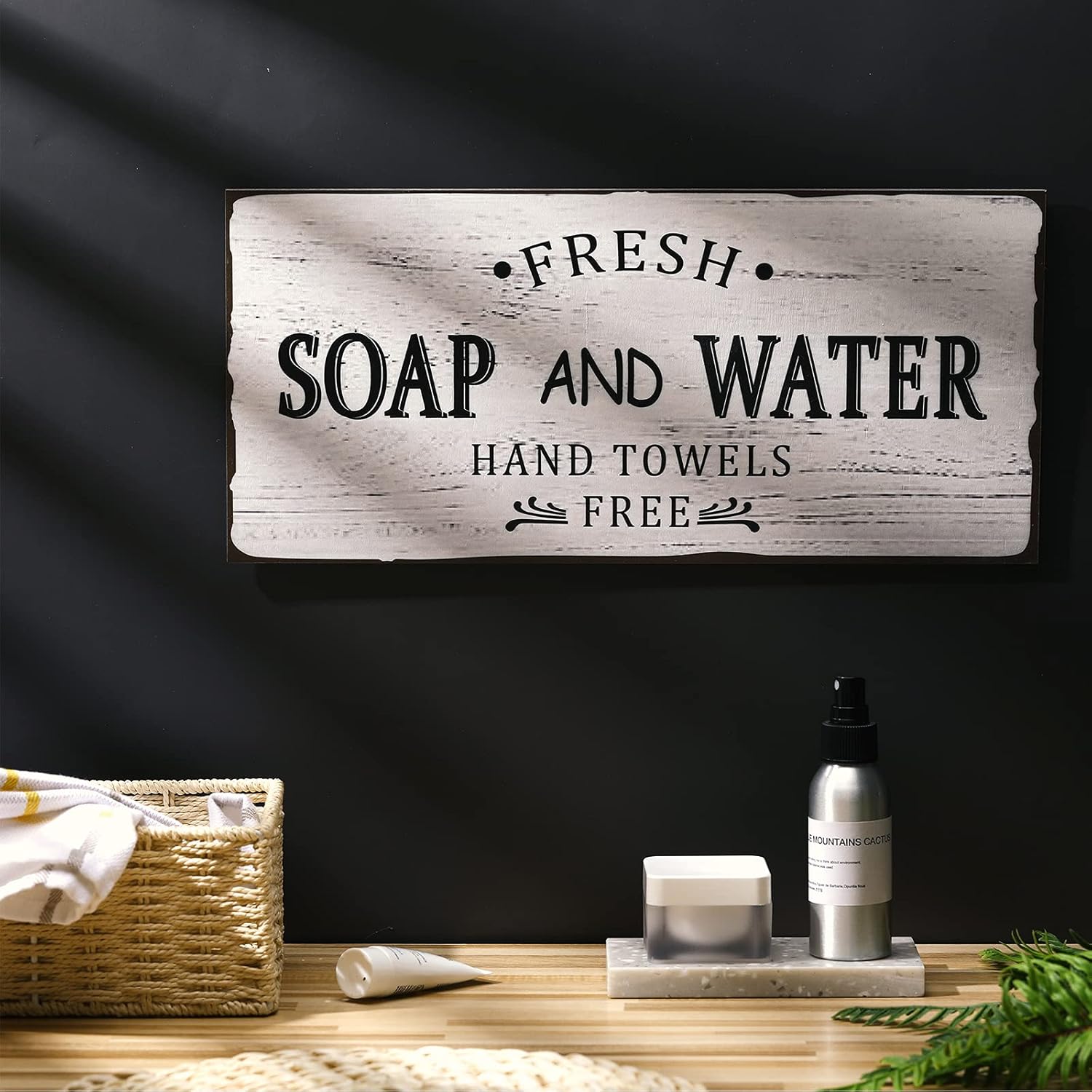 Jetec Farmhouse Bathroom Decor, Fresh Soap and Water Sign Vintage Bathroom Wood Plaque Rustic Wall Decor for Wall Art Decoration Restroom(Classic)