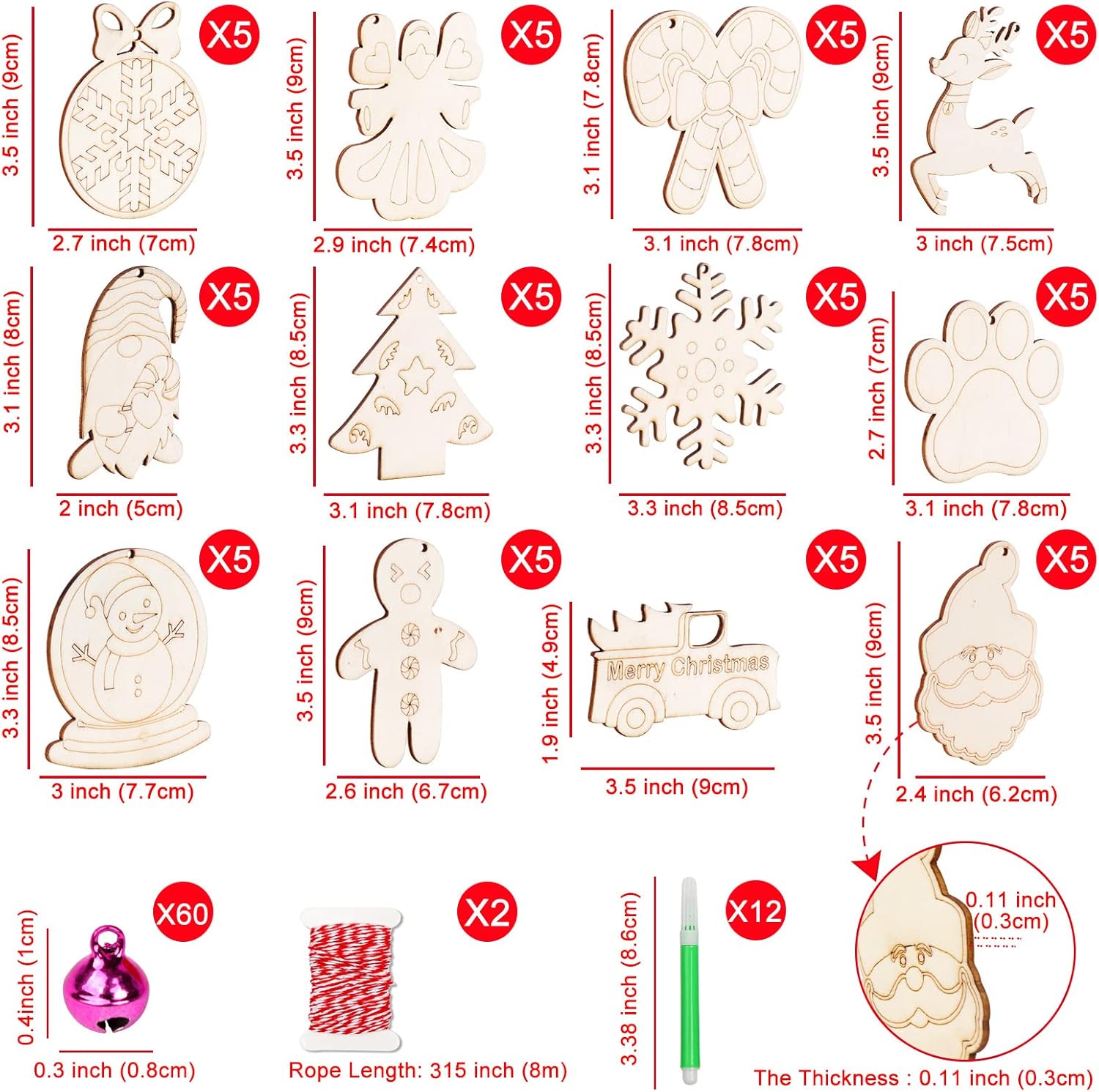 - ❤【Perfect Size】The DIY Christmas wooden ornaments unfinished is about 3.1'', and the length of the rope is 315''. Perfect for Christmas decorations, just paint and decorate them to make a unique ornament you can use year after year. Wonderful for any DIY crafts project