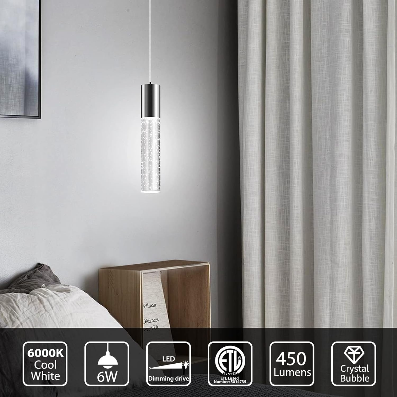 OKELI Pendant Lights Kitchen Island 1 Pack, 6000K Modern LED Bubble Crysta Pendant Light, Chrome Mini Single Island Lights Hanging Lighting for Dining Room, 6W, ETL