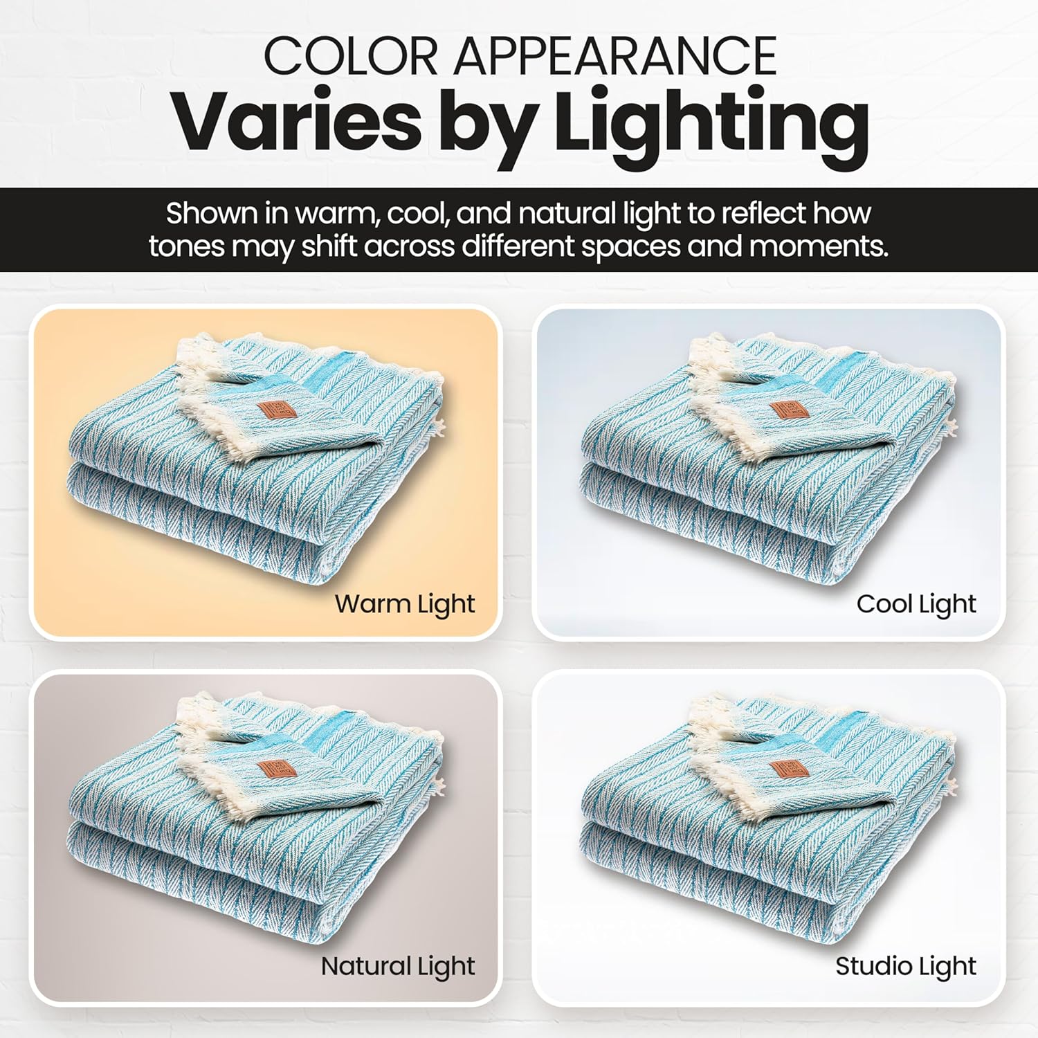 - LIGHTWEIGHT LAYERS FOR RELAXED MOMENTS: Woven from 100% recycled Turkish cotton, this breathable and cute throw blanket adds a soft, textured touch to your space; made for layering on the couch, tossing over your shoulders, or adding a laid-back look to your decor