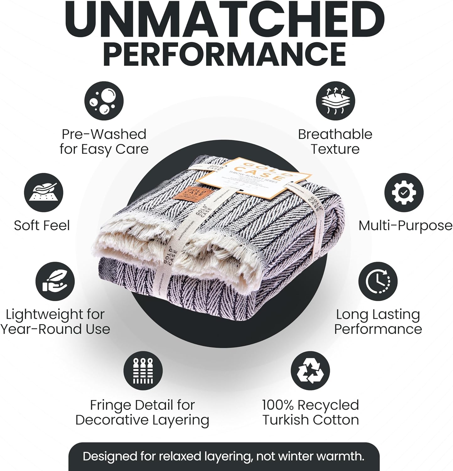 Gold Case Throw Blanket for Couch – 100% Recycled Turkish Cotton Blankets & Throws – Elegant Decorative Throw Blankets for Living Room Sofa – Woven Throws for Couch – Retro Black – 50x60