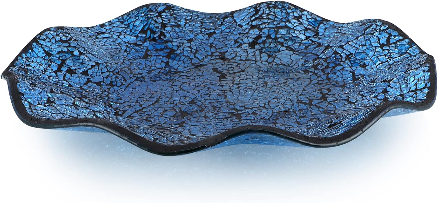 MDLUU Mosaic Centerpiece Tray, 12" Decorative Glass Plate, Home Decor Glass Bowl for Dining Room Table, Coffee Table, Gift (Turquoise)