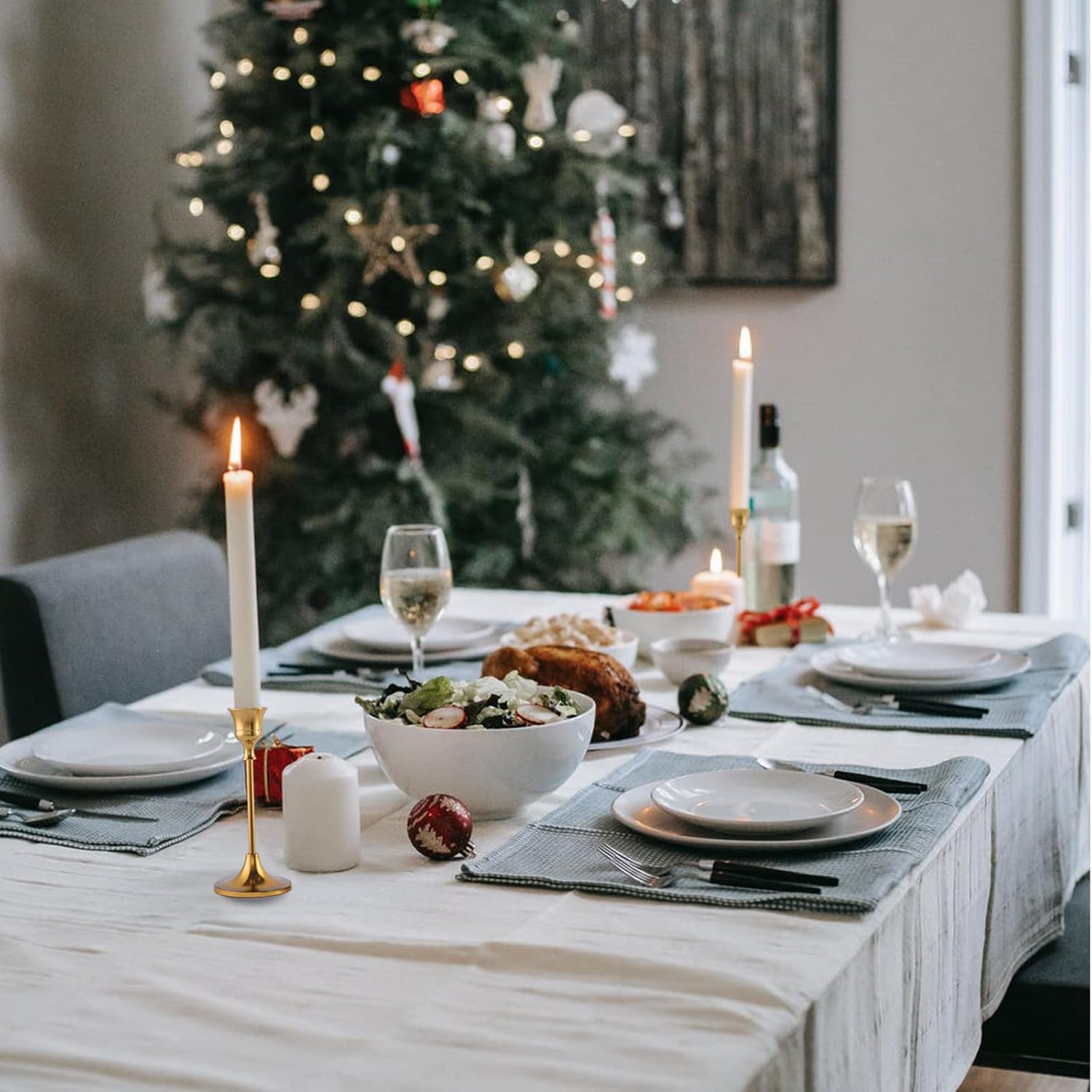 - 👍【Sturdy and Stable】Made of solid, durable, high-quality aluminum alloy material,this brass candlestick holder is durable and sturdy enough to hold tall taper candles. Each gold candle stick holder set can fit 3/4 inch and 7/8 inch small pillar candles as well as LED cone candles to match your dining table decor.It provides a stable base for your candles,ensures stability and longevity for your candles.