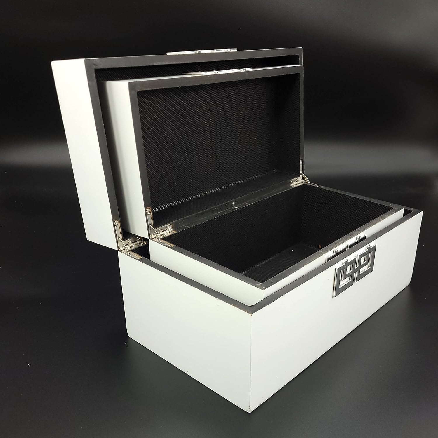Galt International Storage Box Set Decorative Storage Box w/Hinged Lid Classic Design Wood Decor Boxes with Geometric Clasp Storage for Bedroom & Home - Set of 2 (White & Silver)