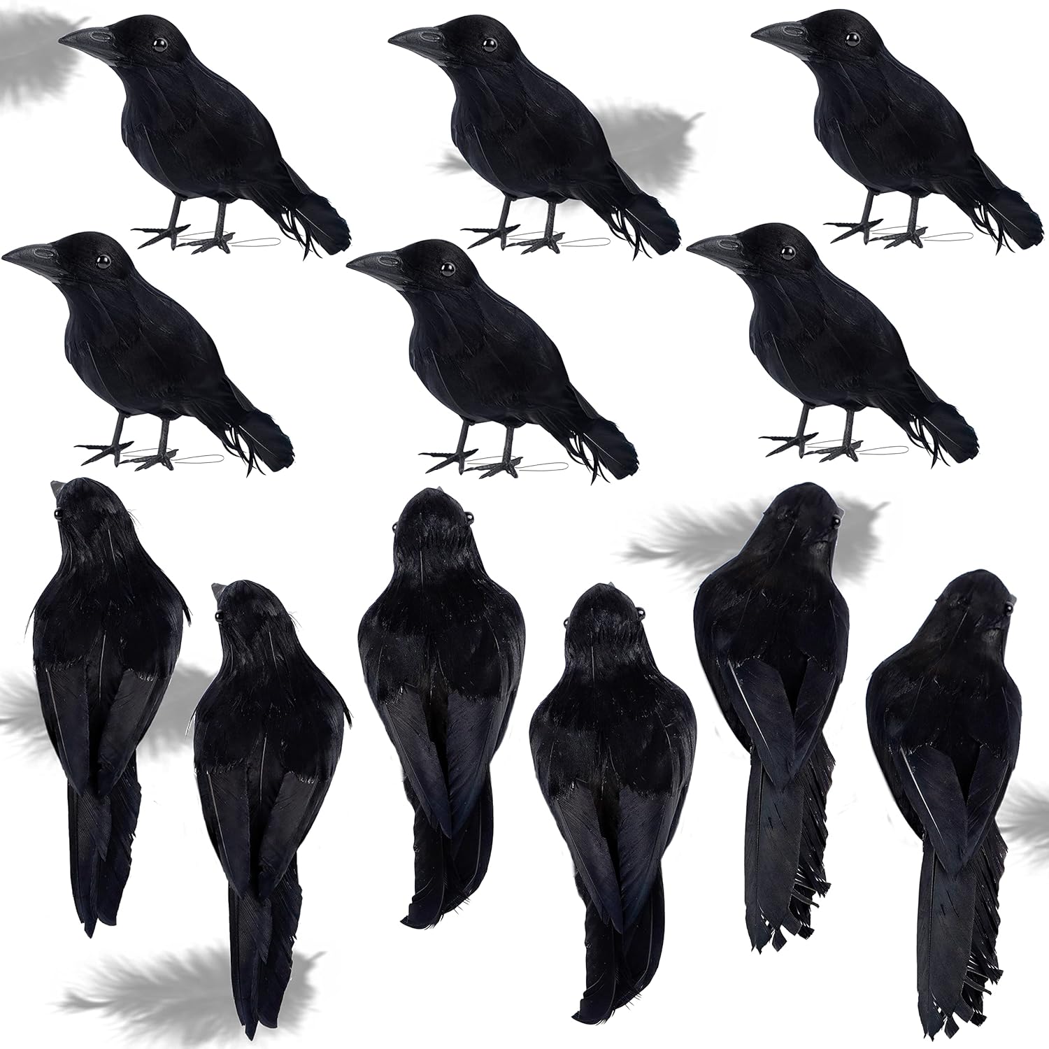 - Vivid Design -- These Halloween artificial black crows are handmade with artificial black feathers, plump and silky feathers make ravens look like the real thing.