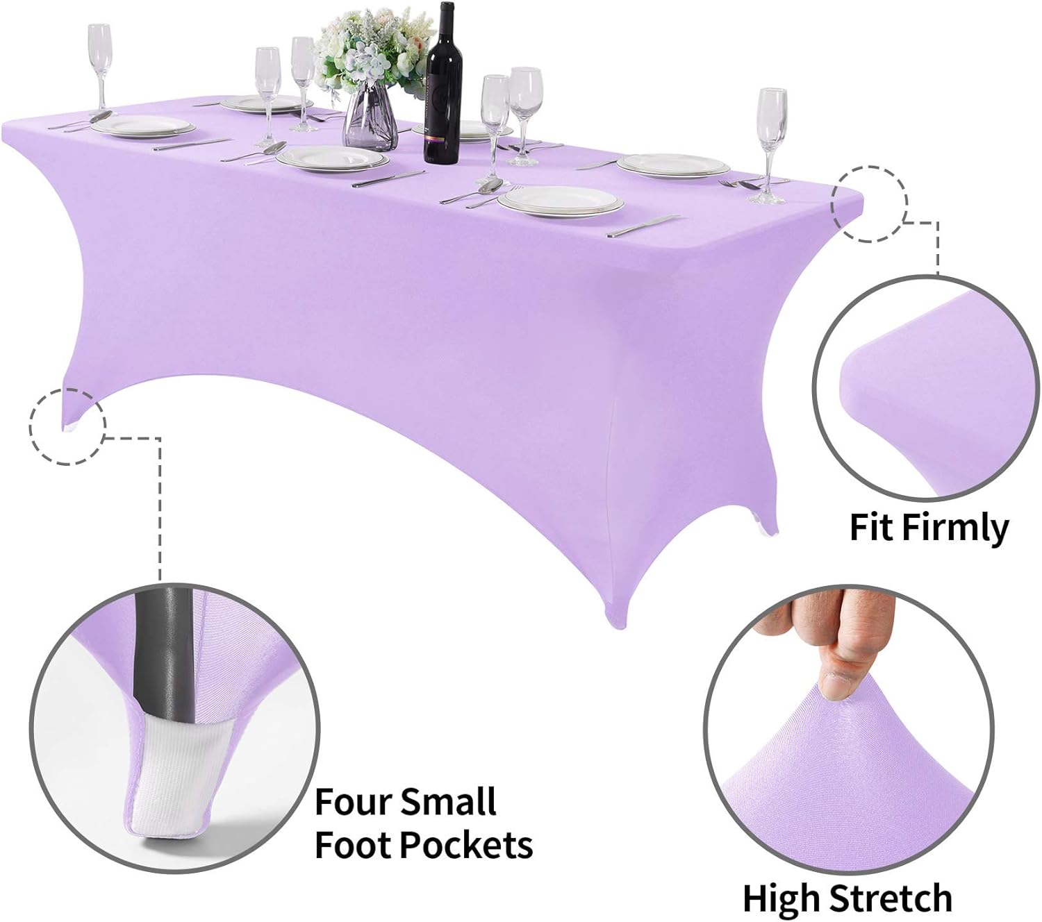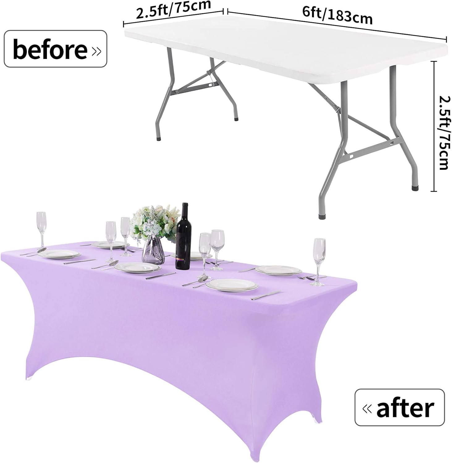 2Pack Spandex Table Cover for 6Ft or 4fT or 8ft Table Universal Fitted Stretch Tablecloth for Party, Banquet, Wedding and Events-Lavender