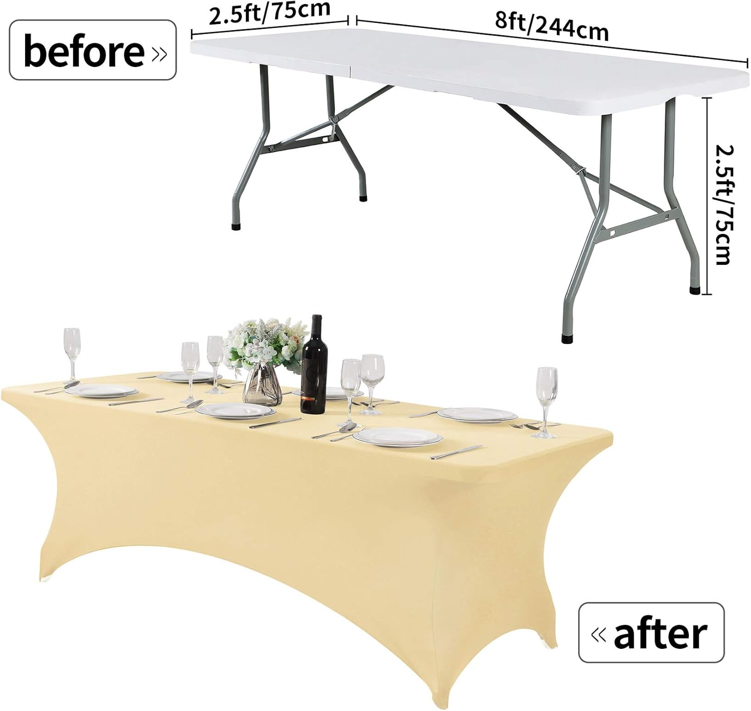 2Pack Spandex Table Cover for 8FT or 4ft or 6ft Table Universal Fitted Stretch Tablecloth for Party, Banquet, Wedding and Events-Champagne