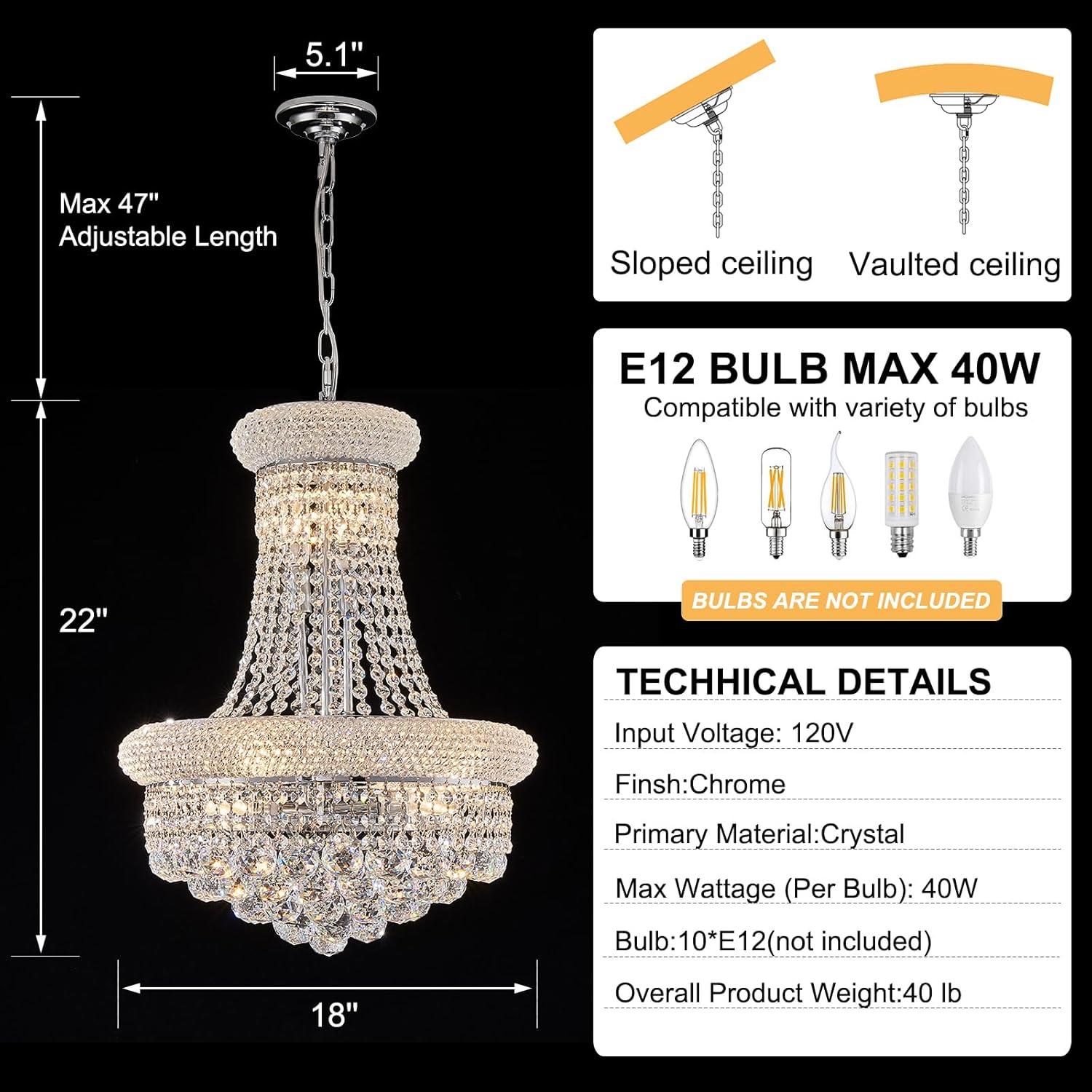 10 - Light Unique Empire Crystal Chandelier for Dining Room Foyer Entryway Living Room Bedroom Chrome Finish