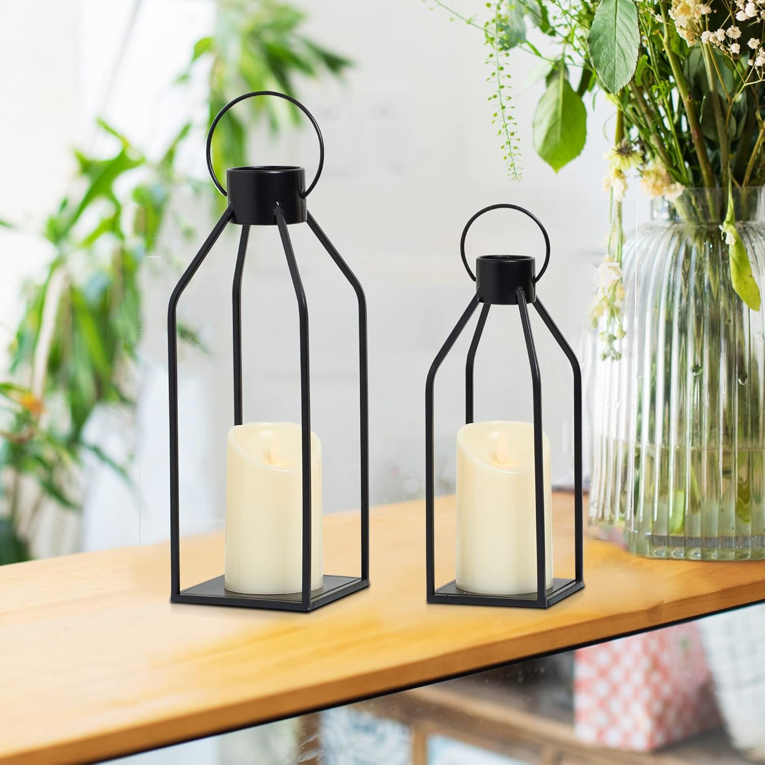 - 【Wide Application】: You can hang them on the wall , or place the candle lanterns on kitchen dinning table and coffee table as table decor. This cute decorative lantern is made of classic black metal, and the metal finish enhances its modern charm. It shows a variety of styles and perfect modern farmhouse decor for the any room,such as living room decor, bedroom, bathroom, dining room, entrance passage,fireplace mantle decor, table decor and MORE!