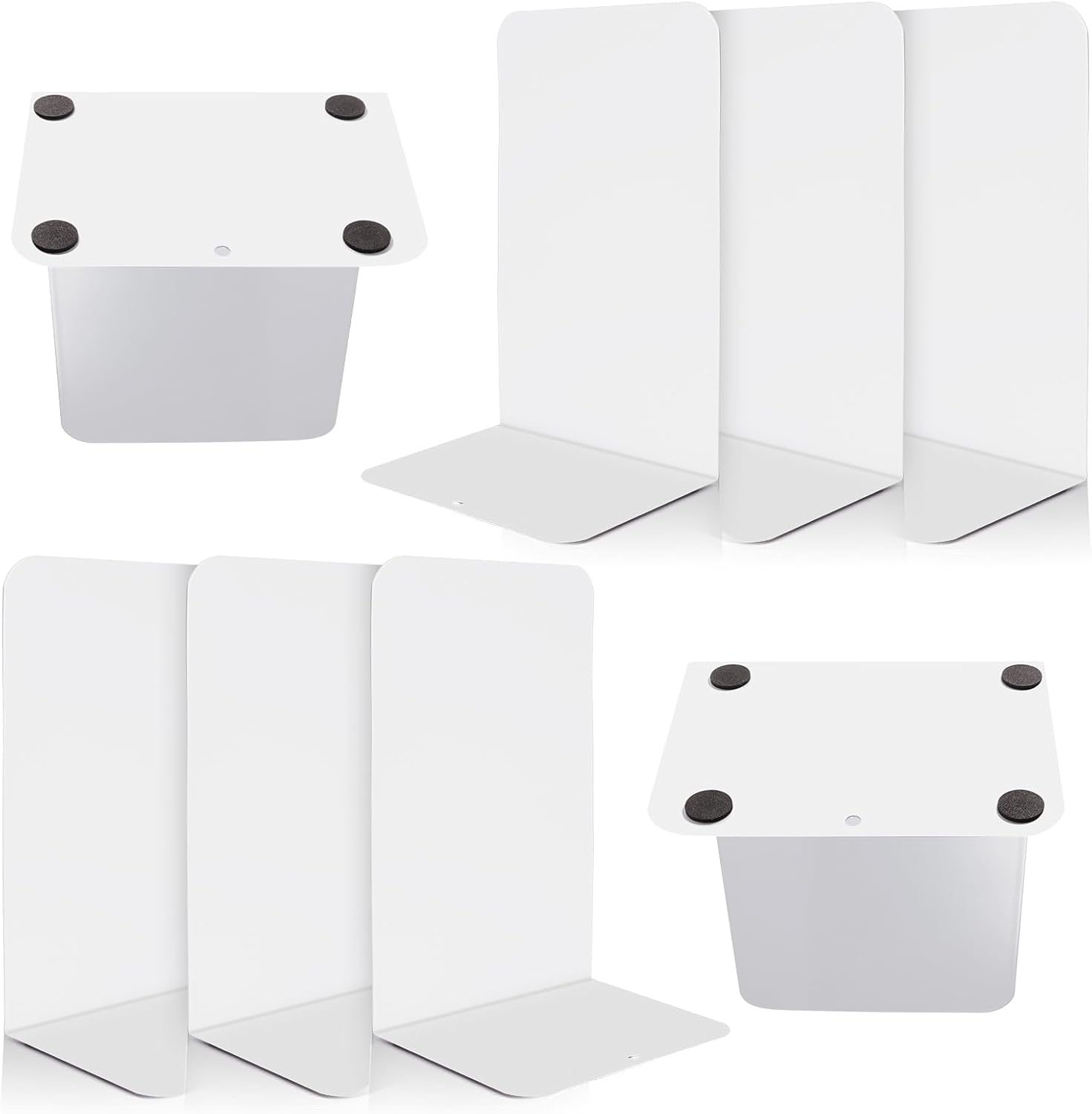 VONDERSO Metal Bookends, 4 Pairs White Metal Book Ends Heavy Duty for Shelves Decor Home Office, Unique White Bookends Supports Anti-Slip for Kids