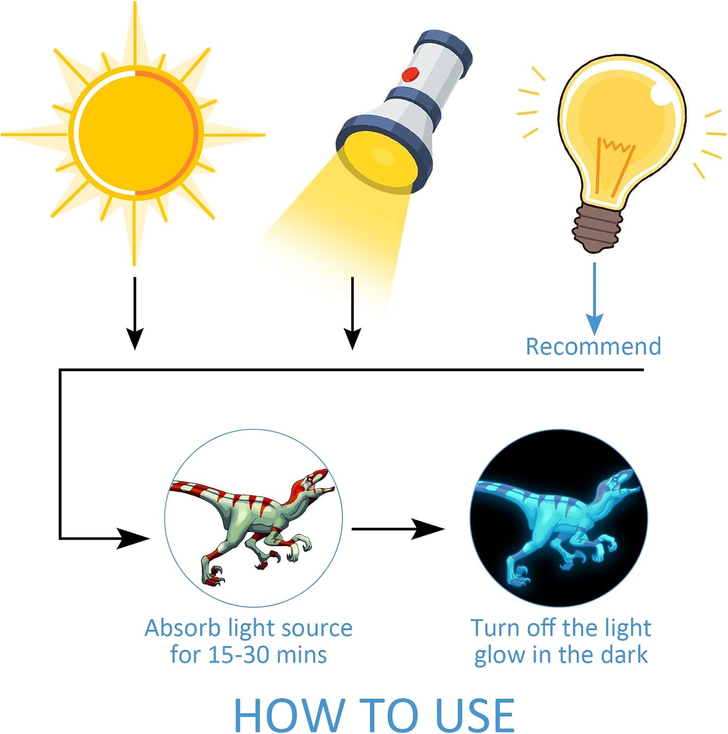 - 🦖【LONGER DURABLE】Just put it in the light or sunlight for 30 minutes before use. It glows in the dark for 8-15 hours, giving you a galaxy feel. Shiny Star Sticker The longer it absorbs light, the longer it will stay with you at night.