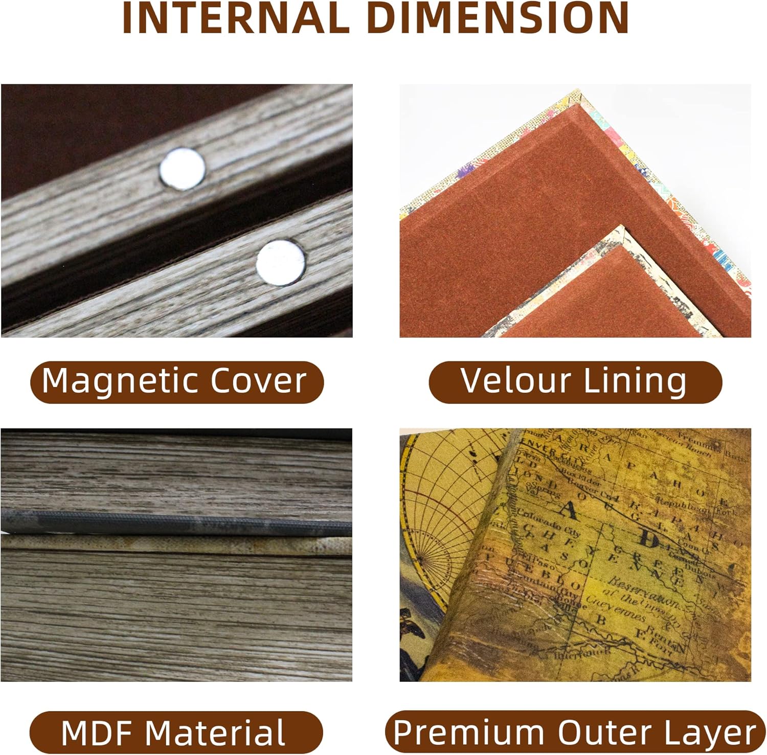 - This book box covered in vintage maps with bump textures, inside has a delicate velvet lining and comes in two sizes, ideal for storing items of different sizes, such as jewelry, glasses, photos, letters,Christmas card etc