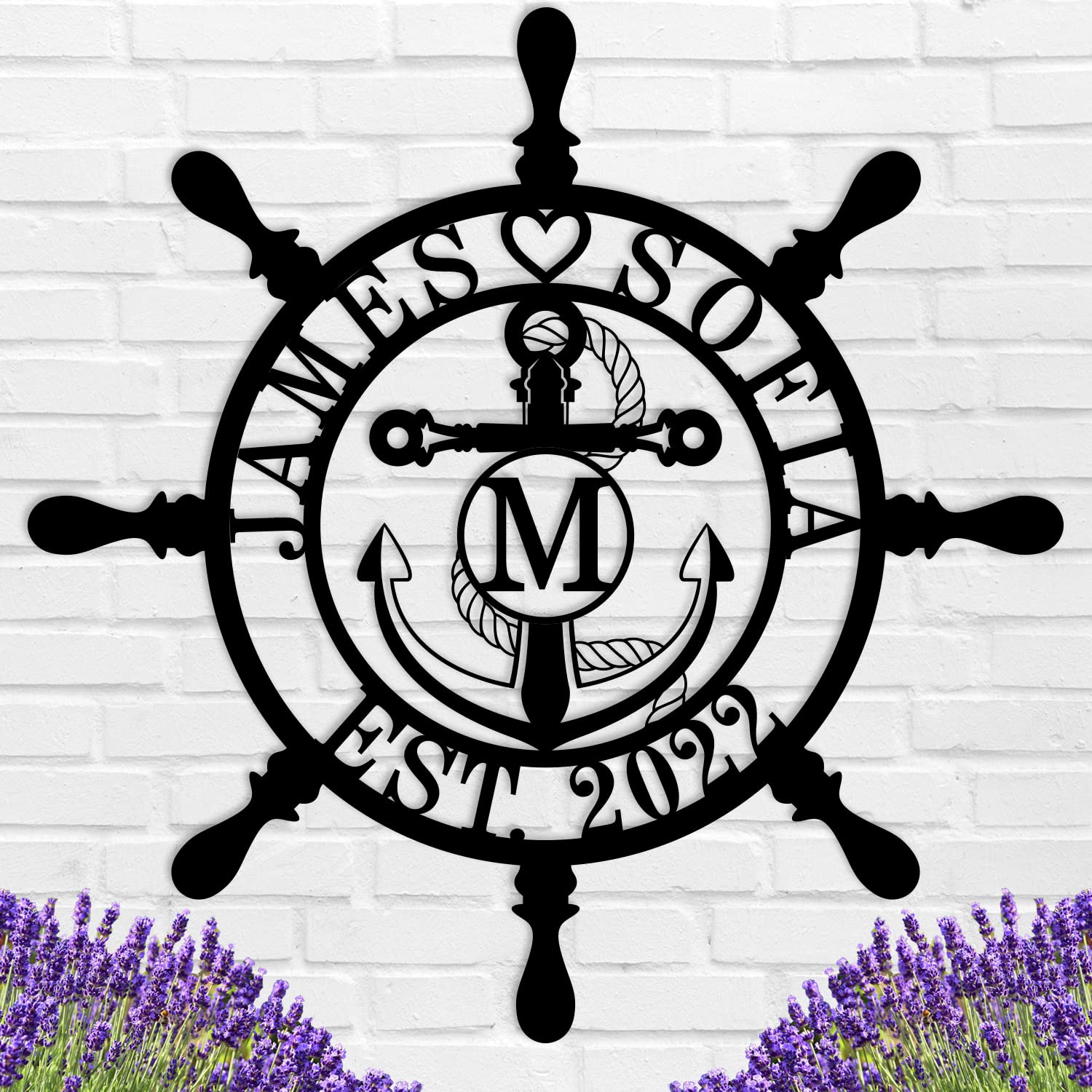 Personalized Ship Wheel Metal Sign, Customized Nautical Wall Decor, Anchor Compass Metal Sign, Family Name Sign, Monogram Wall Decor, Last Name Signs for Home, Housewarming Gift