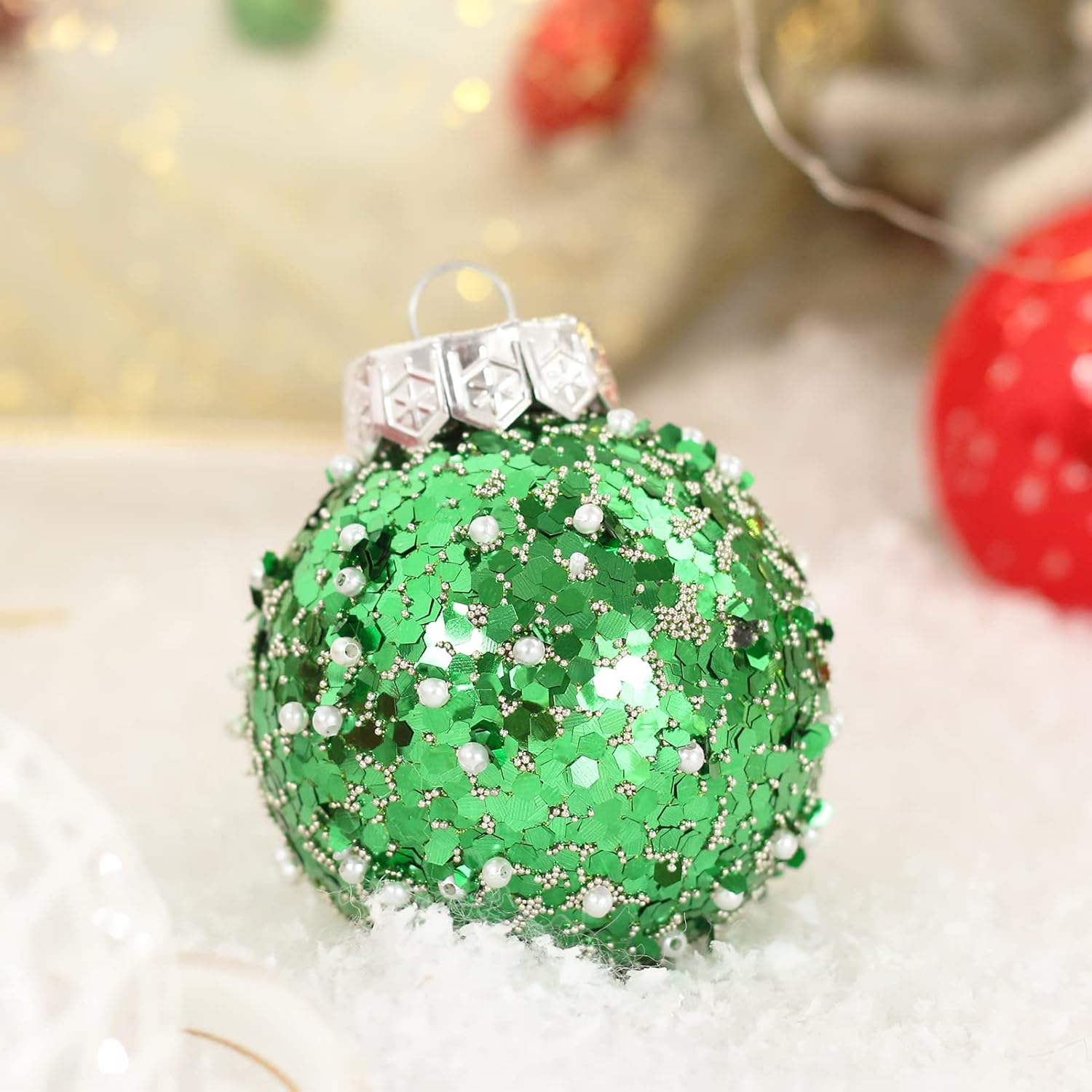 - [Classic Christmas Colors] This set of Christmas ball decorations has red, white and green colored balls with different shapes, such as beads, red lines, sequins, etc., which will make your Christmas tree unique