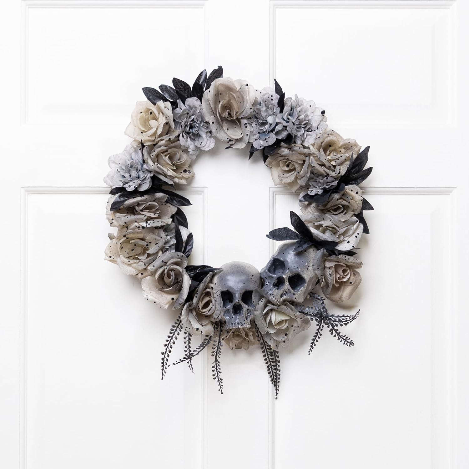 Northlight Double Skull and Roses Artificial Halloween Wreath- 16" - Unlit