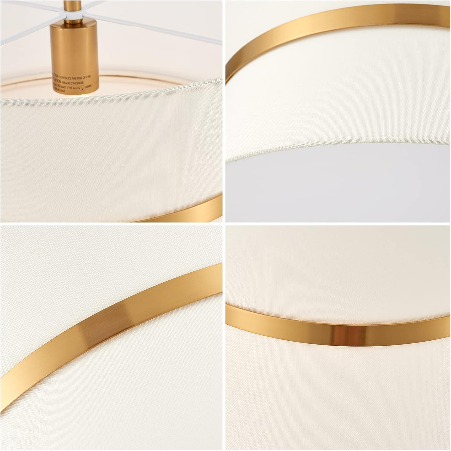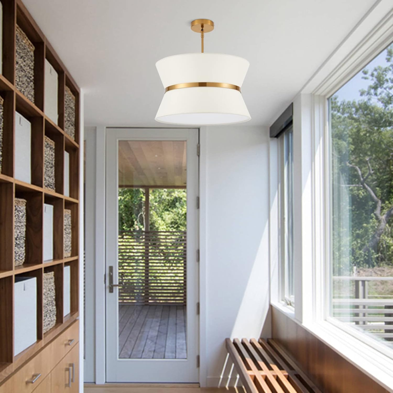 Modern Chandelier with Off-White Fabric Shade and Brass Finished Adjustable Pendant Light for Kitchen Island Living Room Bedroom Hallway, E26, Dia 18 Inch, UL Listed
