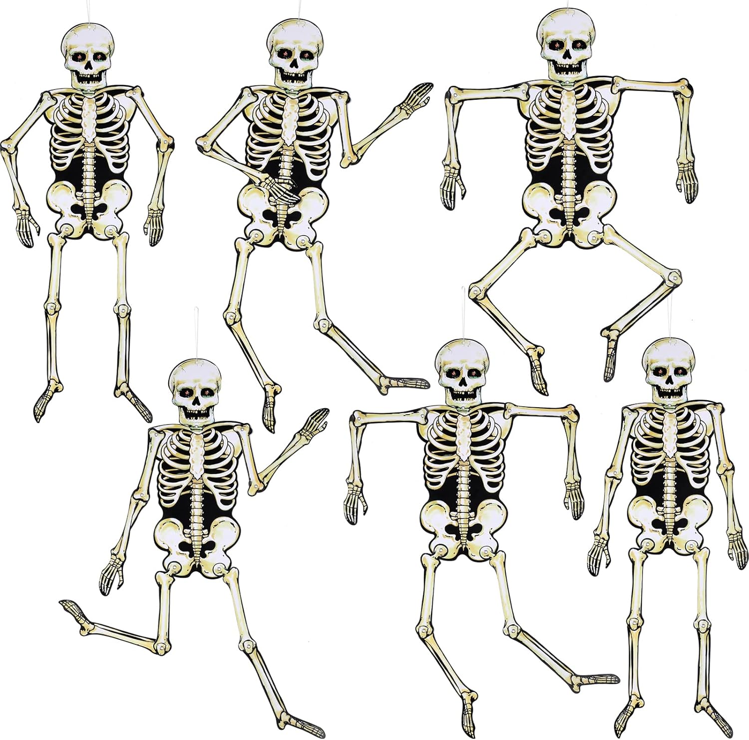 Jeyiour 6 Pieces Halloween Jointed Skeleton Decoration with Movable Joint Halloween Paper Skeleton Cardboard Decoration for Door Window Cutouts Party Prop, 31.5 Inch Tall