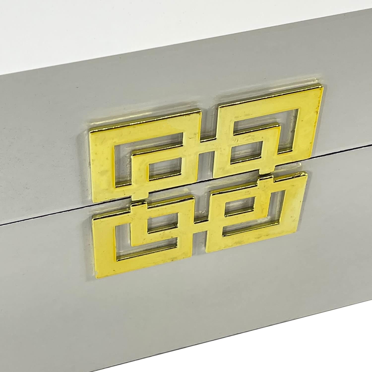 Galt International Large & Small Decorative Storage Box w/Hinged Lid - Classic Design Wood Decor Boxes with Geometric Opening Clasp - Home & Office Storage - Set of 2 (White + Gold)