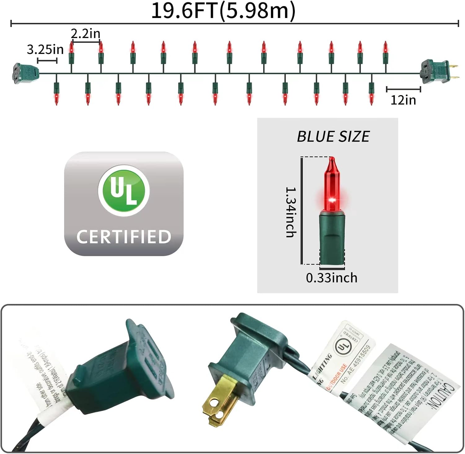 - 🎅Built-in fuses are UL listed for safe use. Complimentary 3 spare bulbs and 2 fuses.