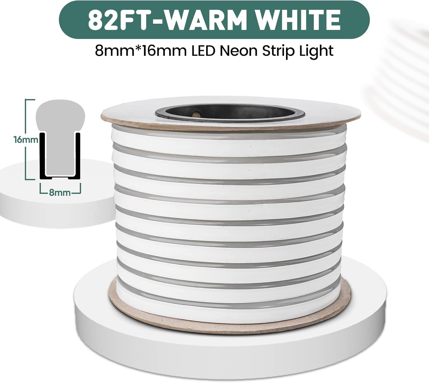 GZBtech Flexible LED Neon Rope Lights 82FT,AC 110-120V Waterproof Strip Light, 120 LEDs/M Cuttable Connectable Neon Lighting for Indoor Outdoor Home Decor/Commercial Building Use-Warm White 25M