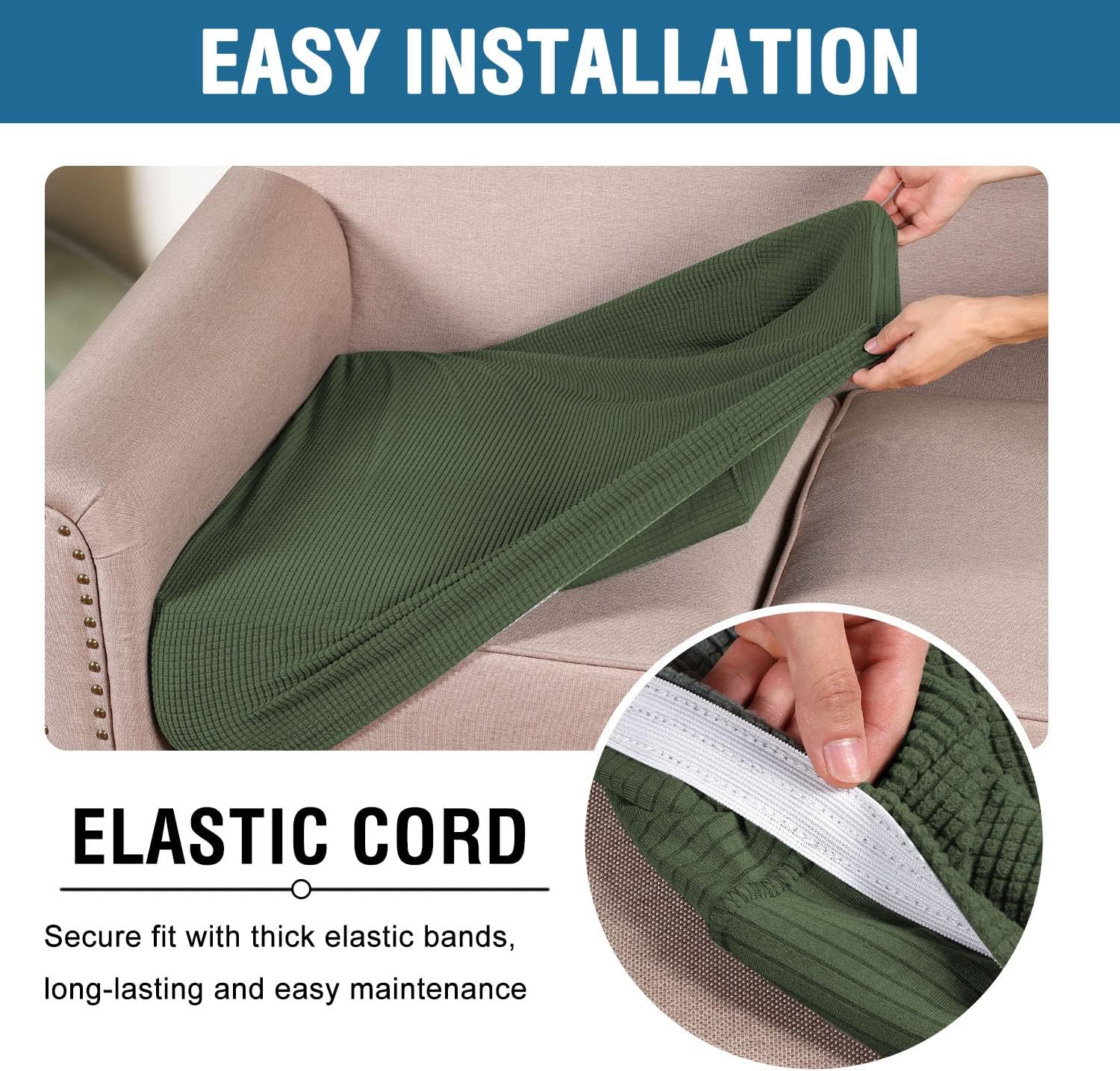 H.VERSAILTEX Super Stretch Individual Seat Cushion Covers Sofa Covers Couch Slipcover Sets Thick Jacquard Textured Twill Fabric (3 Piece Sofa Cushion Covers, Bronze Green)