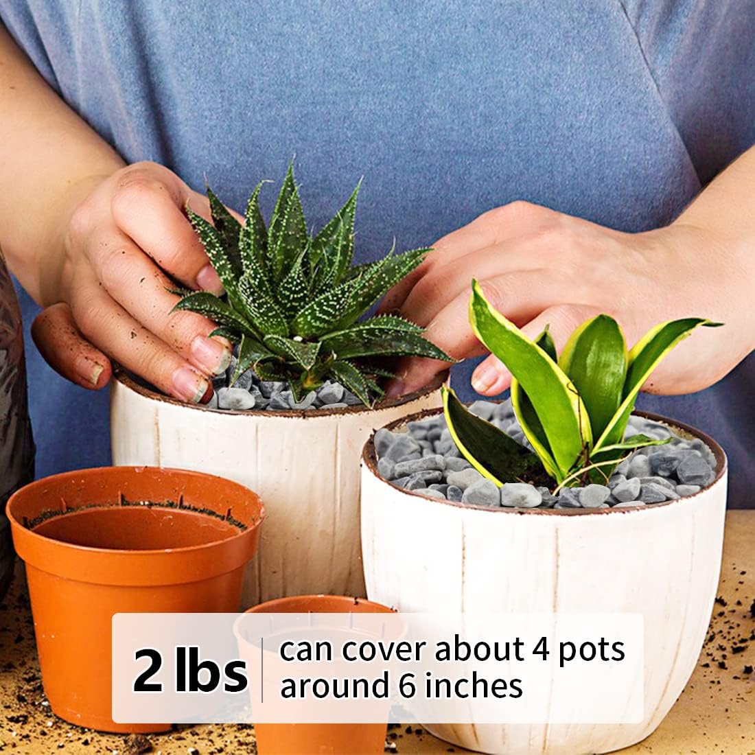- 【Gravel Pebbles Size】These stones are packaged in a 2 pounds bag. The size is about 1/5 inch, it is perfect for succulent and cactus plants, as well as any vase or terrarium