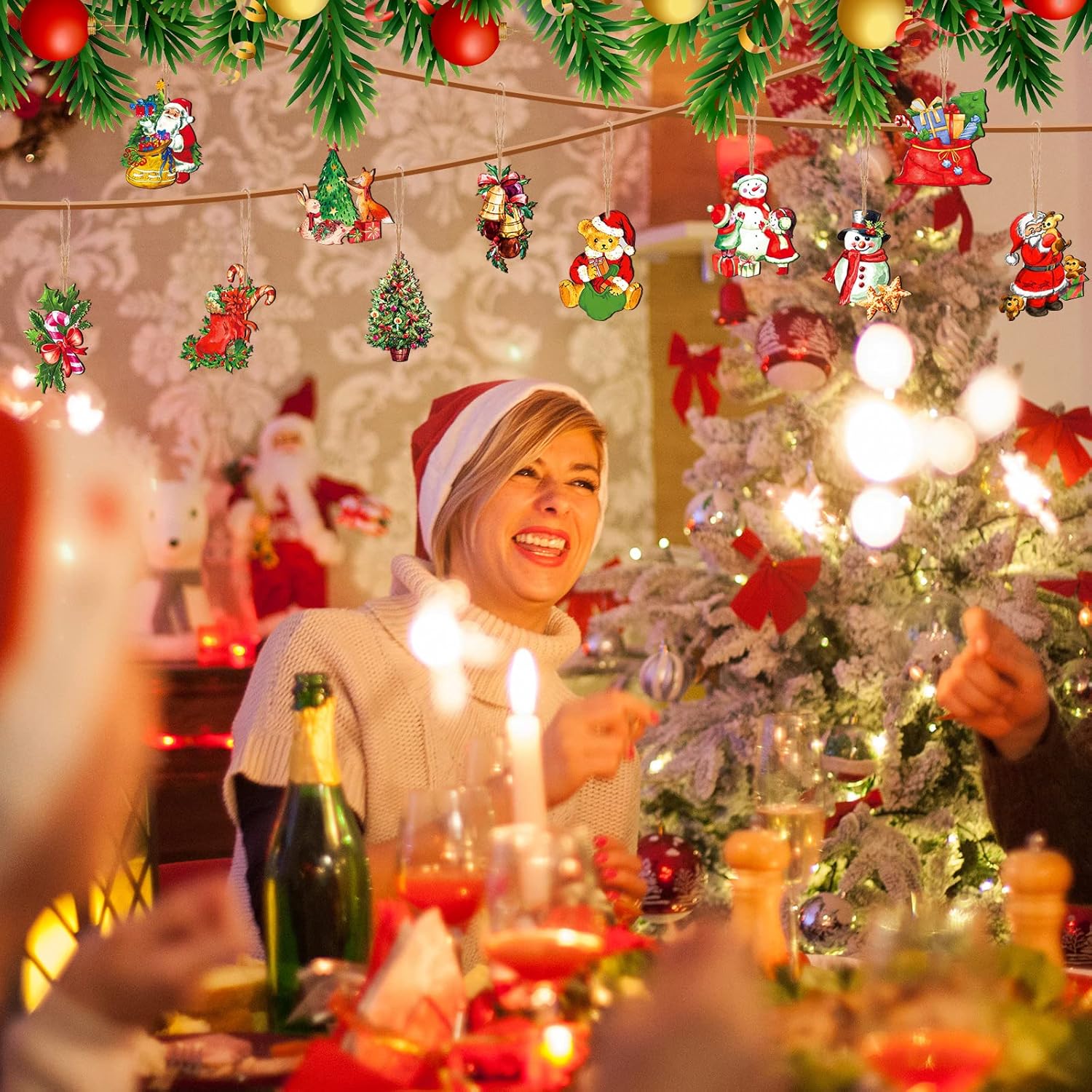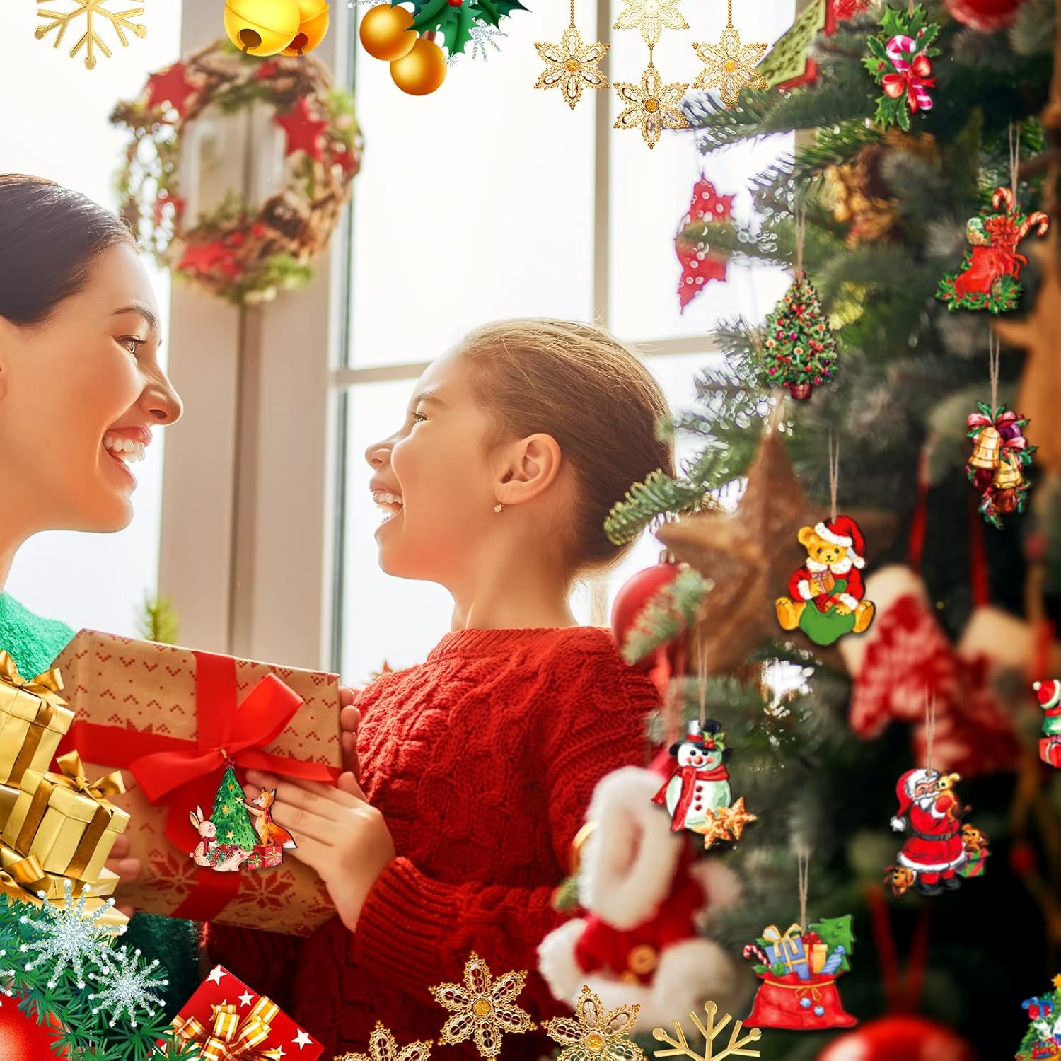 Victorian Style Wood Ornaments - 48 Pcs Christmas Decorations Hanging Santa Claus Snowman Retro Wooden Ornament