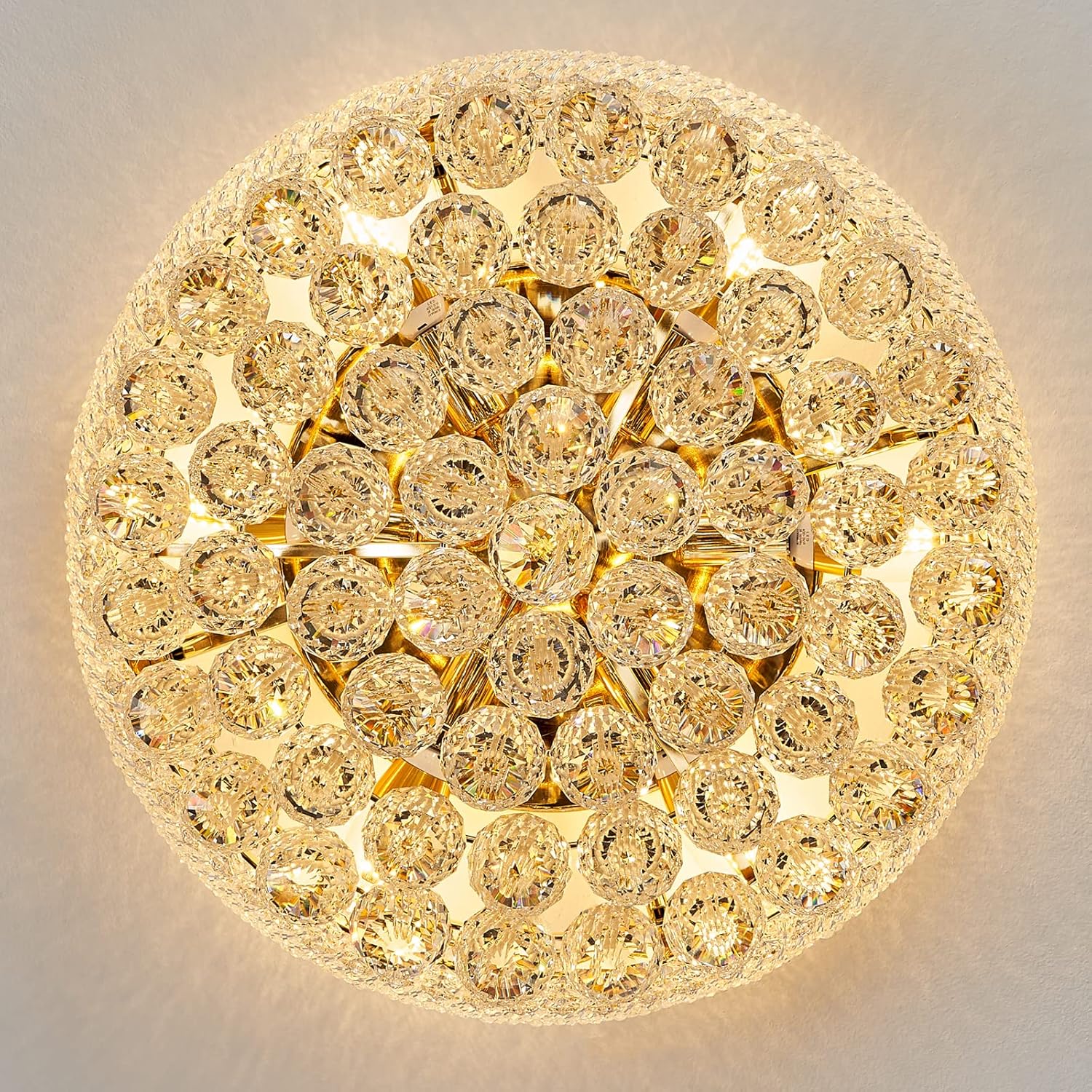 7-Light Crystal Flush Mount Chandelier Ceiling Light Fixture for Living Room Dining Room Bedroom Foyer Entryway Hallway Closet Bathroom (Gold D18)