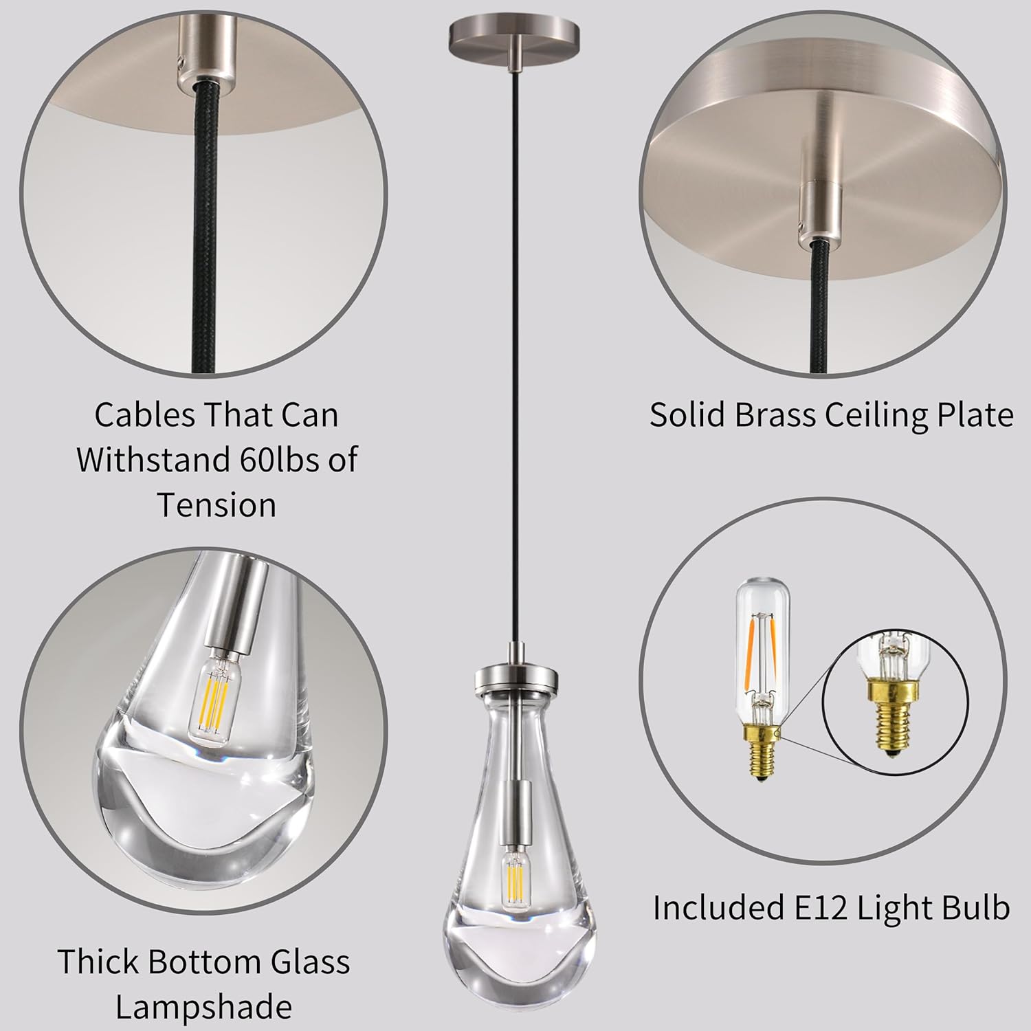 Modern Raindrop Pendant Lights, Kitchen Island Pendant Lights, Nickel Colored Brass Base Dining Room Light Fixture, and Interior Chandelier in The Living Room Hallway, Including The Bulb