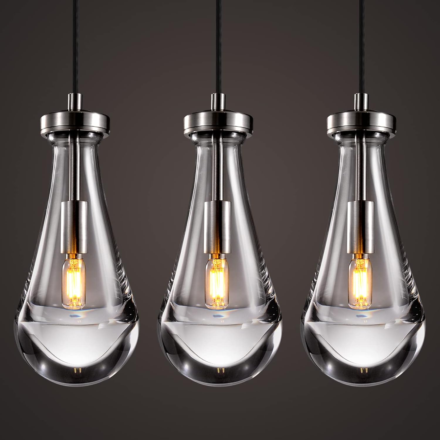 - 【Handmade Raindrop Glass Lampshade】The unique and beautiful raindrop glass shade can not only light up the darkness better but also decorate your house well. Whether it's a modern style decoration or a vintage farmhouse style, these Brushed Nickel pendant lights can fit in perfectly.