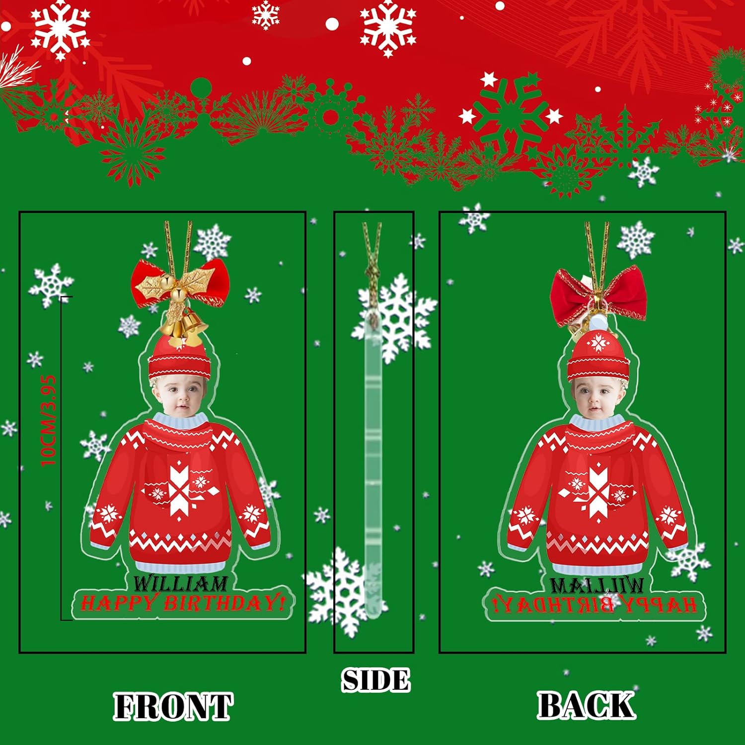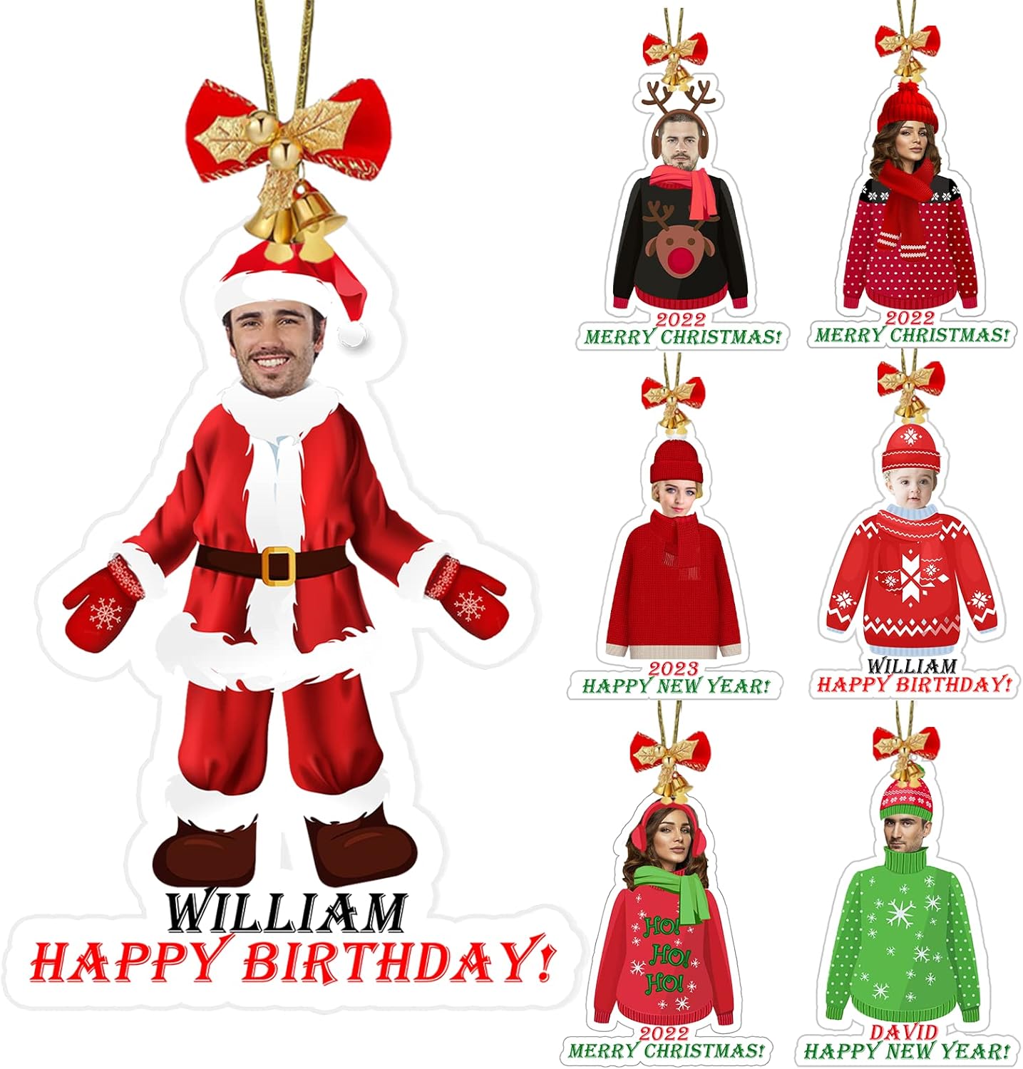 Personalized Christmas Ornament 2025 with Your Photo, Custom Face Ornament 2D Photo Acrylic for Xmas Tree Decoration Holiday Family Car Decor Gifts