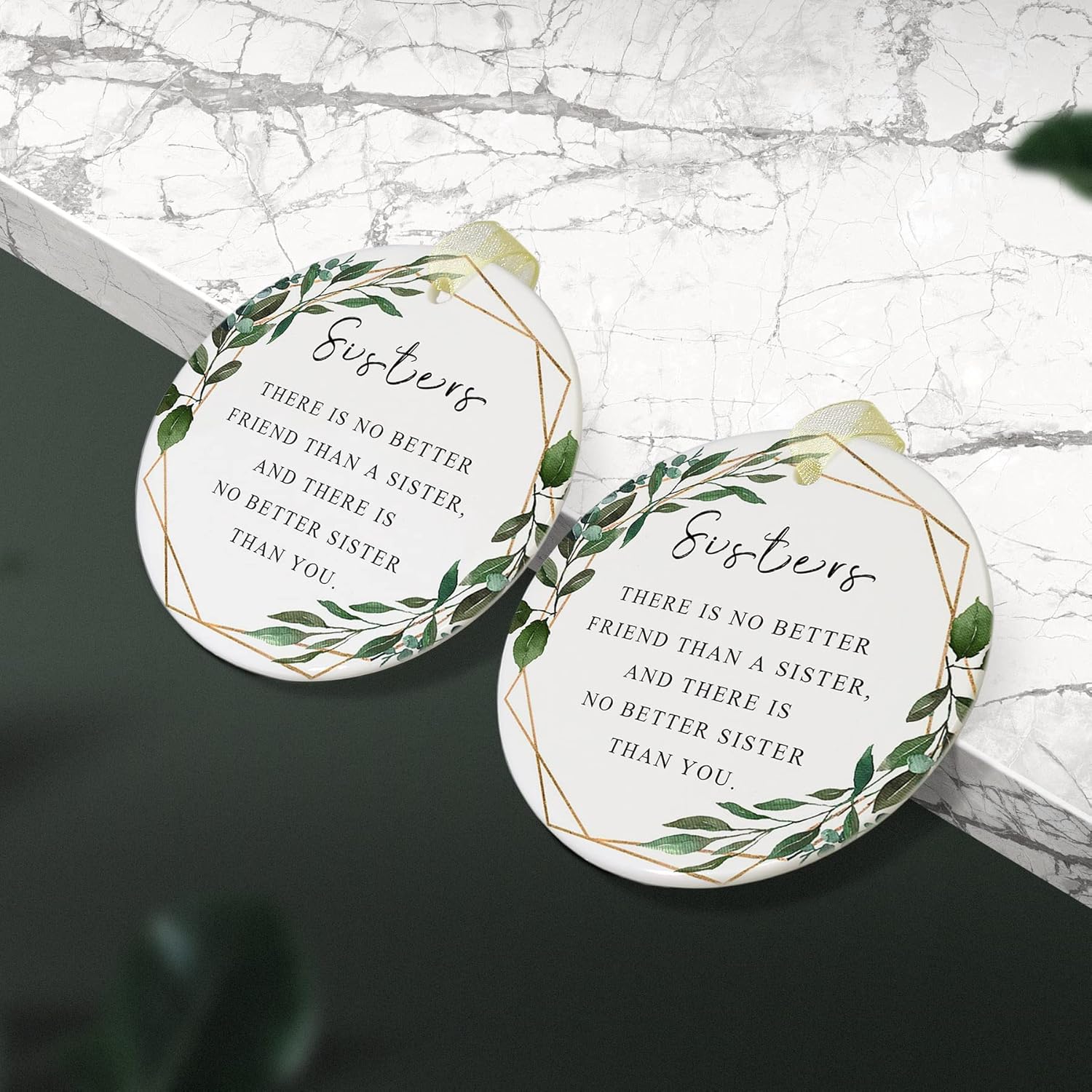 - 🌼【Perfect and delicate size】This is a sister memory ornament with a diameter of 2.9 inches and a thickness of only 0.18 inches. The product includes: a round sis ornamentt*1, a gift box*1 and a lanyard*1. The gift box comes with it makes it easy for you to give the best sis ever gifts directly to family and friends and other special people in your life, and the lanyard that comes with it helps to hang it easily on the Christmas tree or anywhere you want.