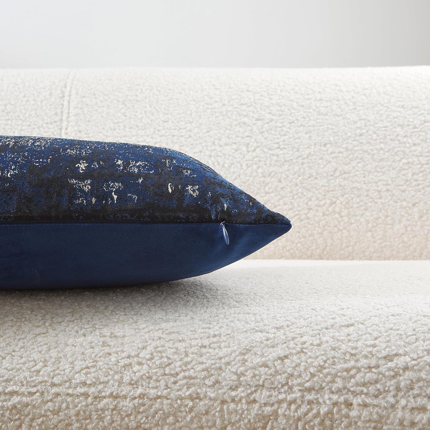 - Premium Jacquard & Velvet Pillow Cover : Crafted with 70% polyester 30% viscose jacquard weave (front) in navy gold, featuring a soft metallic gleam for a sophisticated textured effect. Reverses to 100% polyester navy velvet (back) for cloud-like softness. Two looks in one—instantly elevate your sofas, beds, or accent chairs.