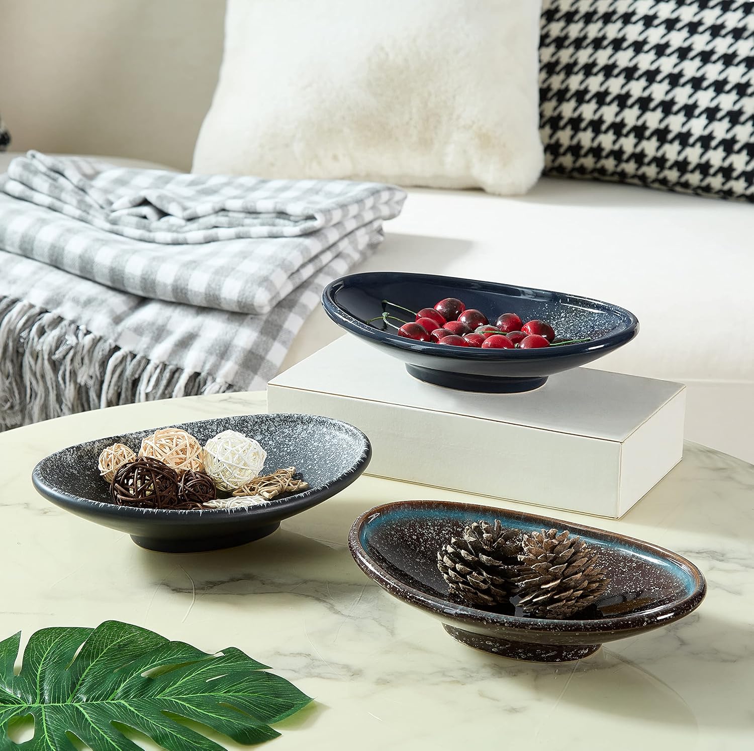 Oval Ceramic Decorative Bowl, Key Dish for Entryway Table, Small Home Decor Accent, Trinket Tray for Office Home Decor Gift (10'' Starrysky Blue with Glaze Layer)