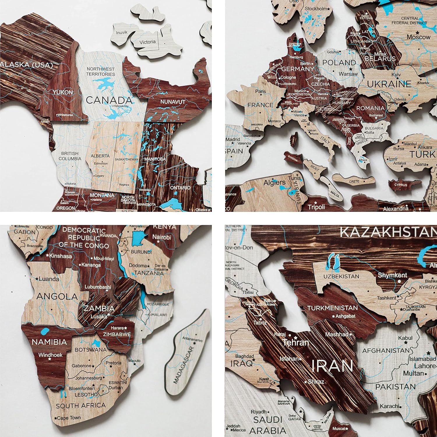 - Premium Quality Construction: This world map wall decor is crafted from superior quality, highly durable birch plywood, available in a selection of 8 colors, 3 sizes and push pins according to your individual needs or preferences.