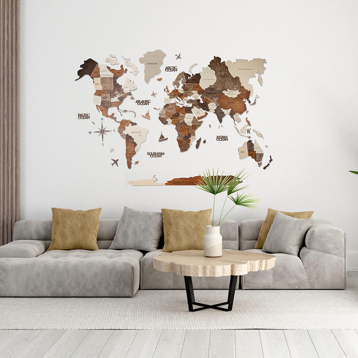 Handmade 3D Wood World Map Wall Art Large Wall Decor Track Your World Travels - Special For Home, Kitchen And Office (Large, Multicolor)