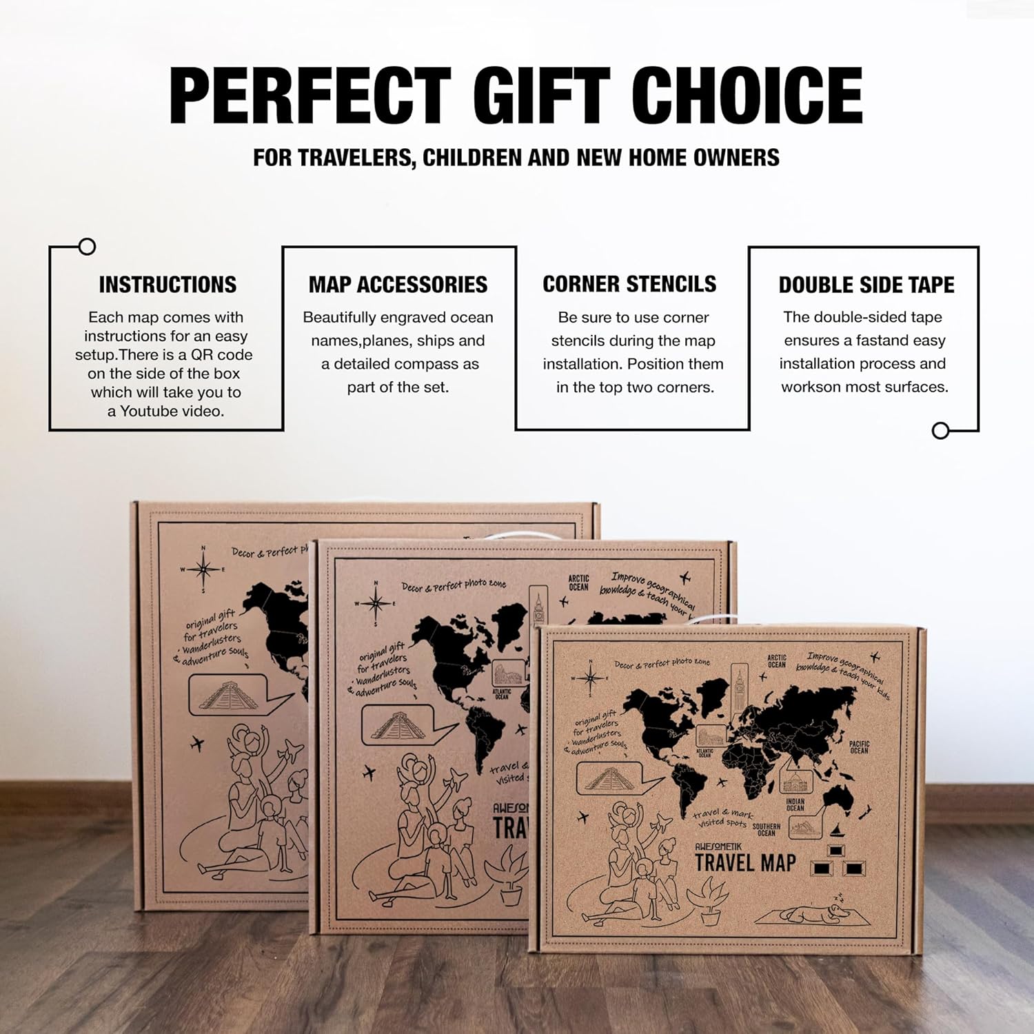 - A Must For Travel Enthusiasts: Whether you’re a travelling afficionado or you simply enjoy the occasional DIY house project that adds elegance and style to your living space, the Awesometik 3d wall art travel map is the perfect choice!